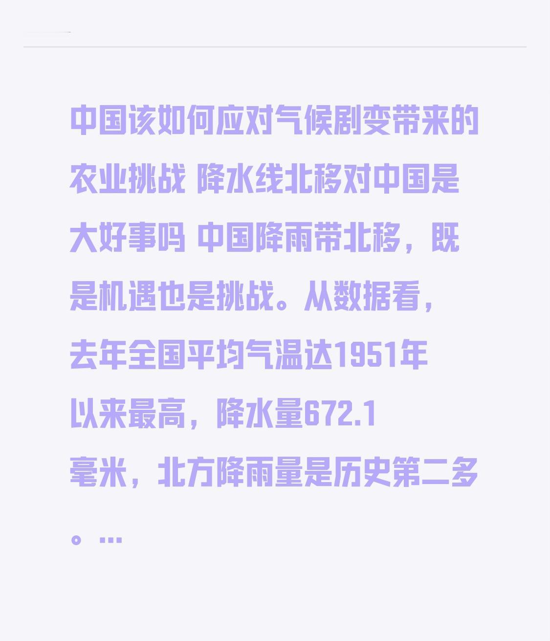 中国该如何应对气候剧变带来的农业挑战降水线北移对中国是大好事吗中国降雨带北移