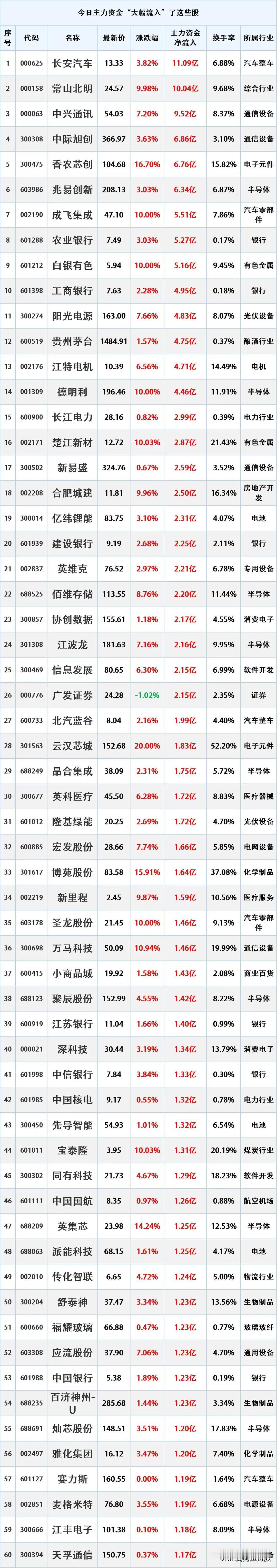 尾盘跑步入场,10月16日主力资金大幅流入的股票名单。 资金流入是指在一定时期