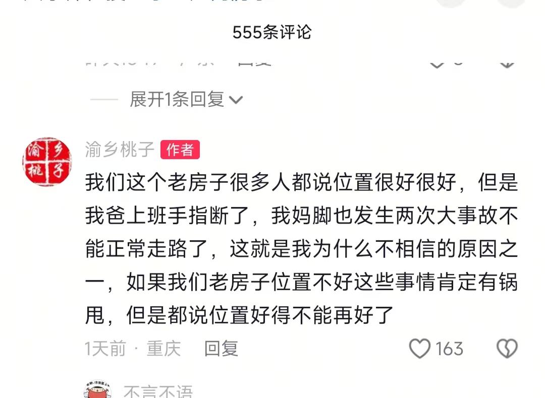 现在全网最烦恼的男就是渝乡桃子了吧! 不是因为卖菜刀不好卖也不是因为拍视频没人看,而是因为新房设计图要不要给风水师看,父子俩脸都快红了 昨天刷到渝乡桃子跟他爸吵起来的视频,我手里的瓜子“啪嗒”掉桌上都没察觉——就因为新房设计图要不要给风水师看,父子俩脸都快红了。他爸说“得让风水师看看,改改才吉利”,桃子直接顶回去“改来改去麻烦,我才不要”,那股子犟劲儿,像极了我家翻修老房子时的样子。 说真的,我当时第一反应是“桃子咋这么轴”,后来越看越代入:他说老房被人夸“位置好得不能再好”,可他爸断了手指、他妈脚受了两次大伤,这就是他不信风水的原因。这话一下子戳到我了——我姥姥之前总说“凡事图个心安”,可心安要是得靠花钱改图、委屈自己,那还有啥意义?之前我跟我妈聊起这事儿,她还说“老辈信的不是风水,是个盼头”,我当时没懂,看桃子这视频,突然就有点明白了。 看桃子这事儿,我又想起之前刷到的16楼二手房:买家说“对面山上有墓地,但便宜还全款,总比没房强”。当时有人骂“价值观扭曲”,我倒觉得挺真实——就像桃子不想请风水师,不是不信,是觉得“实用比忌讳重要”。我刚毕业那阵租房子,住的地方楼下就是殡仪馆,我妈天天打电话让我搬,说“不吉利”,可房租一个月才700块,我哪有钱搬?后来住了半年,也没觉得有啥不好,反而觉得楼下清净,没那么多噪音。 有人说“风水这东西,宁可信其有”,我姥姥就常说“住得踏实比啥都强,不是信那个啥,是别让自己心里膈应”。可要是“信”得让自己委屈,比如桃子得花钱改图,或者买房得花光积蓄,那还不如不信。之前我爸总说“不听老人言,吃亏在眼前”,可那次翻修房子,要是真听了风水师的,挪了大门,现在指不定跟邻居闹成啥样呢! 其实不管是桃子建房,还是咱家里遇到类似的事,别一上来就吵。渝乡桃子要是跟他爸好好说“爸,我知道你想让房子吉利,可老房位置好咱家人还是出事,而且请风水师改图得花钱,我摆摊卖菜刀也不容易,咱先按设计图建,以后真有啥问题再想办法”,说不定他爸能理解。 后来,桃子也出来解释说,我们这个老房子很多人都说位置很好很好,但是我爸上班手指断了,我妈脚也发生两次大事故不能正常走路了,这就是我为什么不相信的原因之一,如果我们老房子位置不好这些事情肯定有锅甩,但是都说位置好得不能再好了! 所以可能桃子心里就有一条刺再,风水是信则有,不信则无的 总之,刷到这种家庭矛盾,别瞎跟着劝“听长辈的”,也别骂晚辈“不孝”。日子是人家过的,人家知道啥样最适合自己。就像桃子,他不想请风水师,说不定心里早就盘算好怎么把房子建好,咱瞎操心,反而帮倒忙,你说对不?