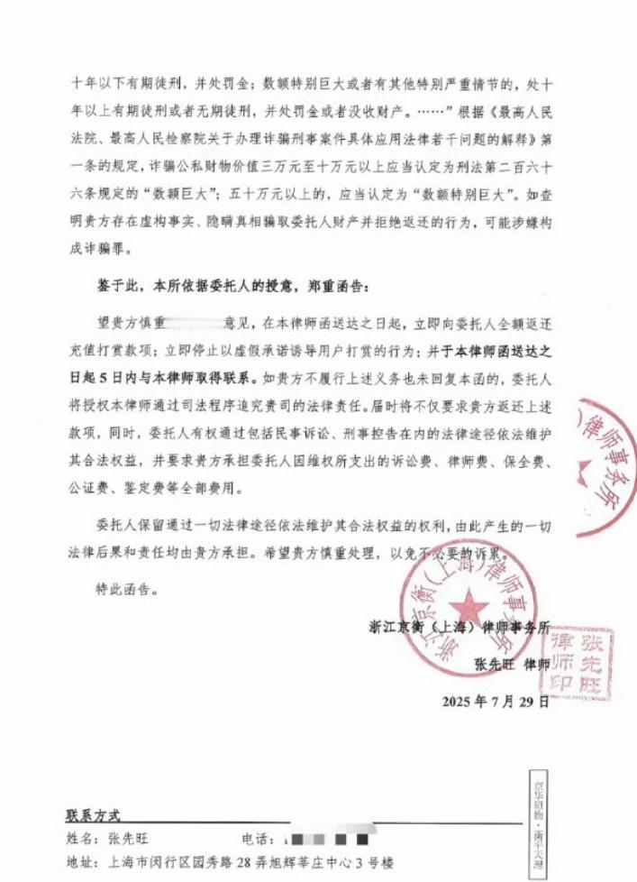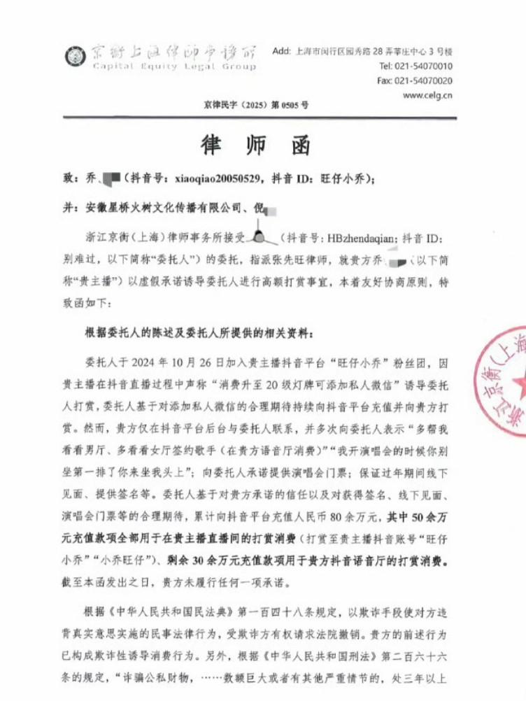 没想到一个网红的塌房居然还能有后续。 网红“旺仔小乔”被榜一大哥起诉了,该大哥的核心诉求就是全额返还 80余万元打赏款,强调“结果和钱并非最重要,无法忍受多次被欺骗”。 早在今年7月31日,他他曾发律师函要求返还款项,但旺仔小乔未在5日期限内履行义务。 据这位大哥描述,旺仔小乔可是给了他许多的承诺,如消费升至20级灯牌可添加私人微信,并私下承诺提供演唱会门票、过年线下见面、签名等福利。 这位大哥也是大气,直播间打赏50万,30万用于关联语音厅消费。可他什么都没有得到,直到旺仔小乔塌房前。 那旺仔小乔的行为是否构成欺诈或是违约呢?律师认为主播未明确拒绝履约或逃匿,且曾计划举办演唱会,难以认定诈骗罪。 在民事方面,大哥需要证明打赏行为因虚假承诺“违背真实意思”。若聊天记录等证据充分,主播未兑现承诺构成违约,可能需部分赔偿。有律师指出,成年人对打赏风险应有认知,全额返还需视具体证据强度。 其实很难理解,为何会对一个不敢露脸的网红打赏如此大的金额,真是钱多了,需要精神世界享受了。 但不管怎么说,榜一大哥的诉讼撕开了直播行业“承诺套利”的遮羞布,希望平台能够好好管制下这群主播。 至于这位大哥能否追回这笔钱,就让我们拭目以待吧!