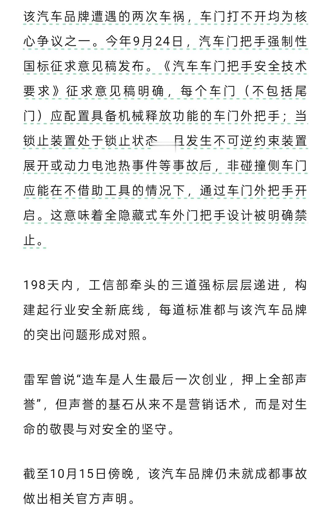 1️⃣ 今天最新一篇标题最为犀利,198天车门还是没打开,直指两大热点事件: