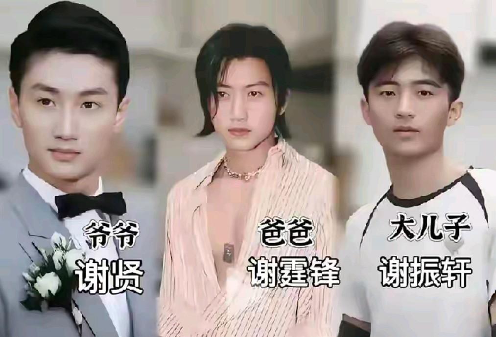 这是谢振南与爸爸谢霆锋和爷爷谢贤祖孙三人18岁时的颜值图,大家看看祖孙三代的颜值