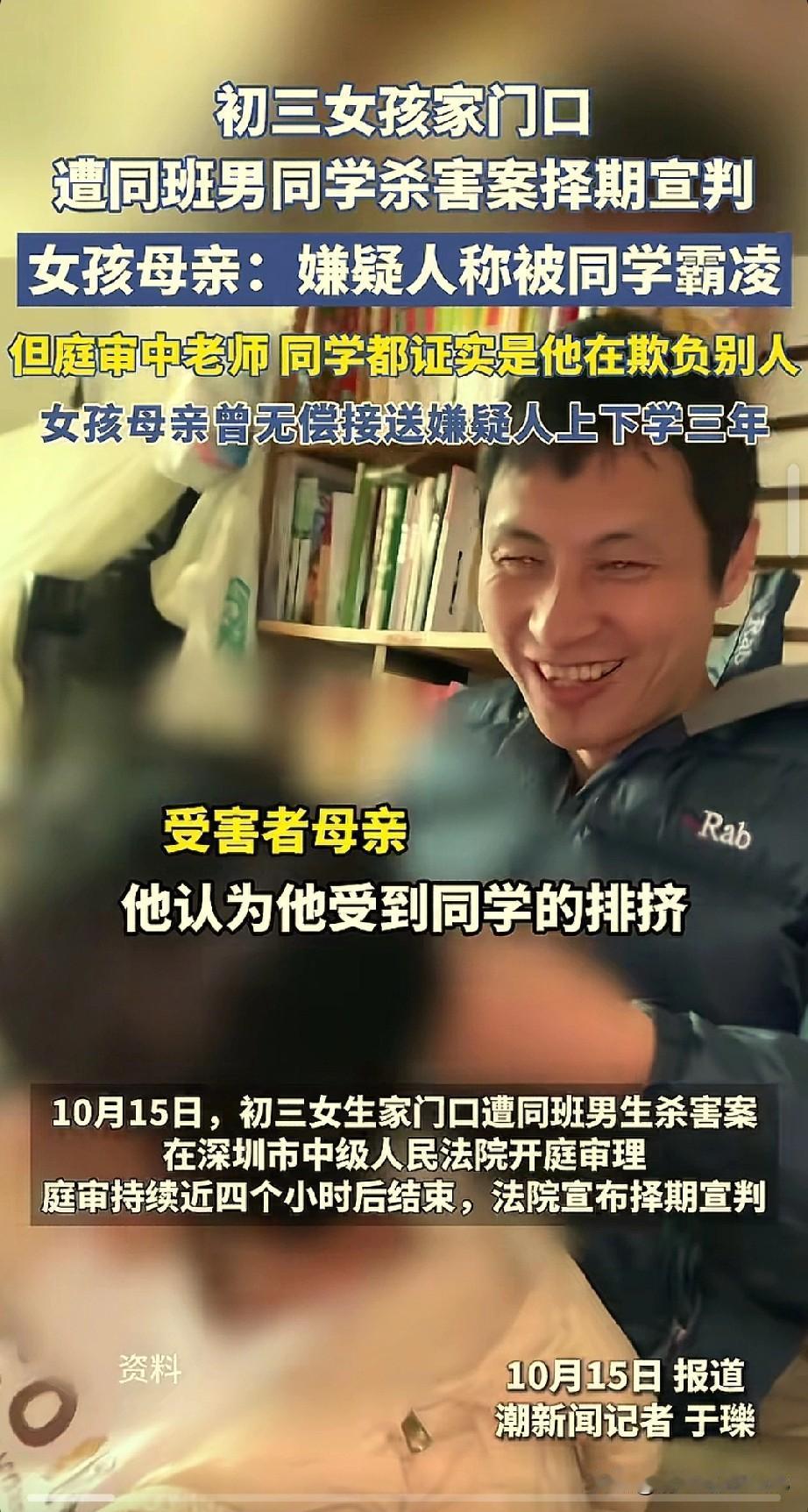 深圳被同班同学杀害的初三女生优优的妈妈说,钟某在法庭上说自己的作案动机是因为受到