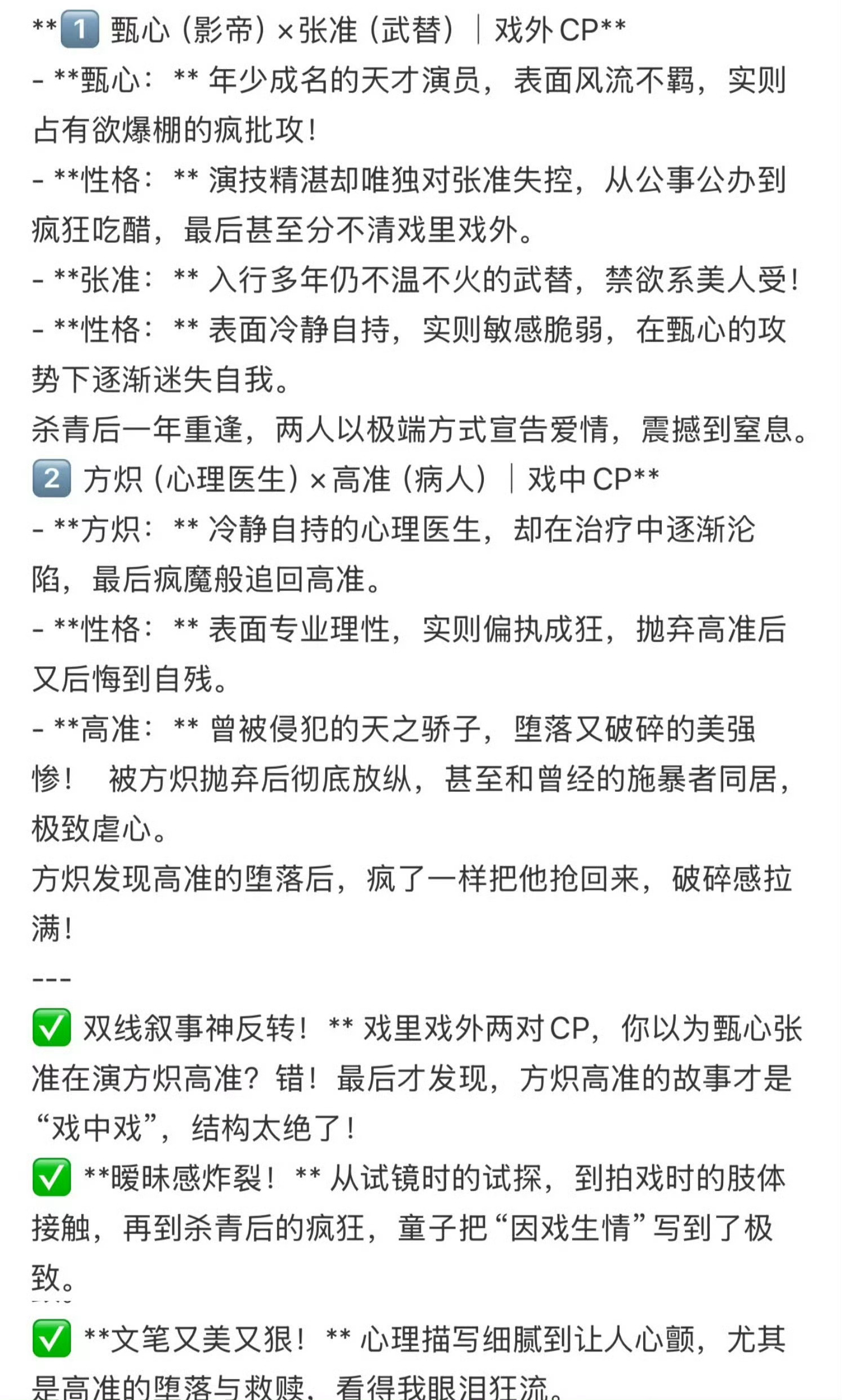 入戏角色人设 童子大大官宣《入戏》影视化了,写得太好了,人设也很带感,谁能驾驭角色?