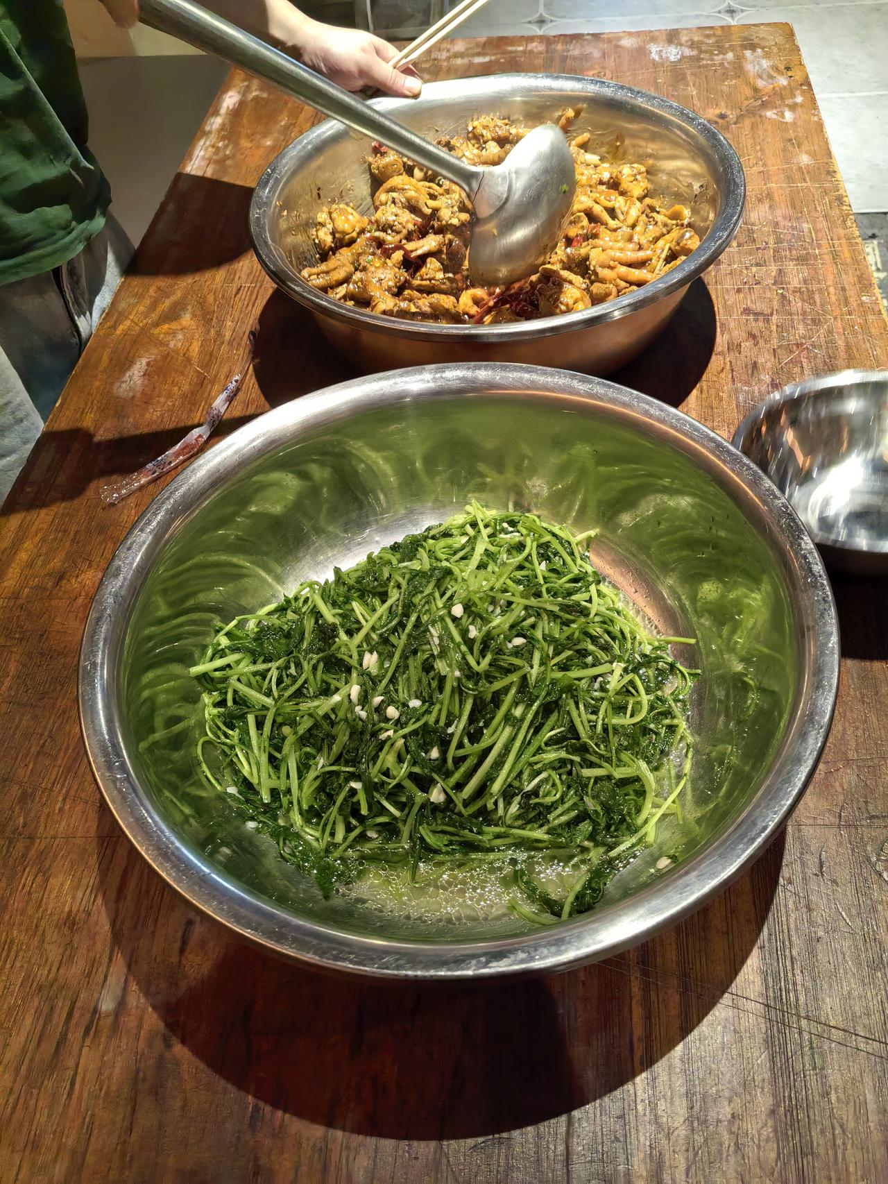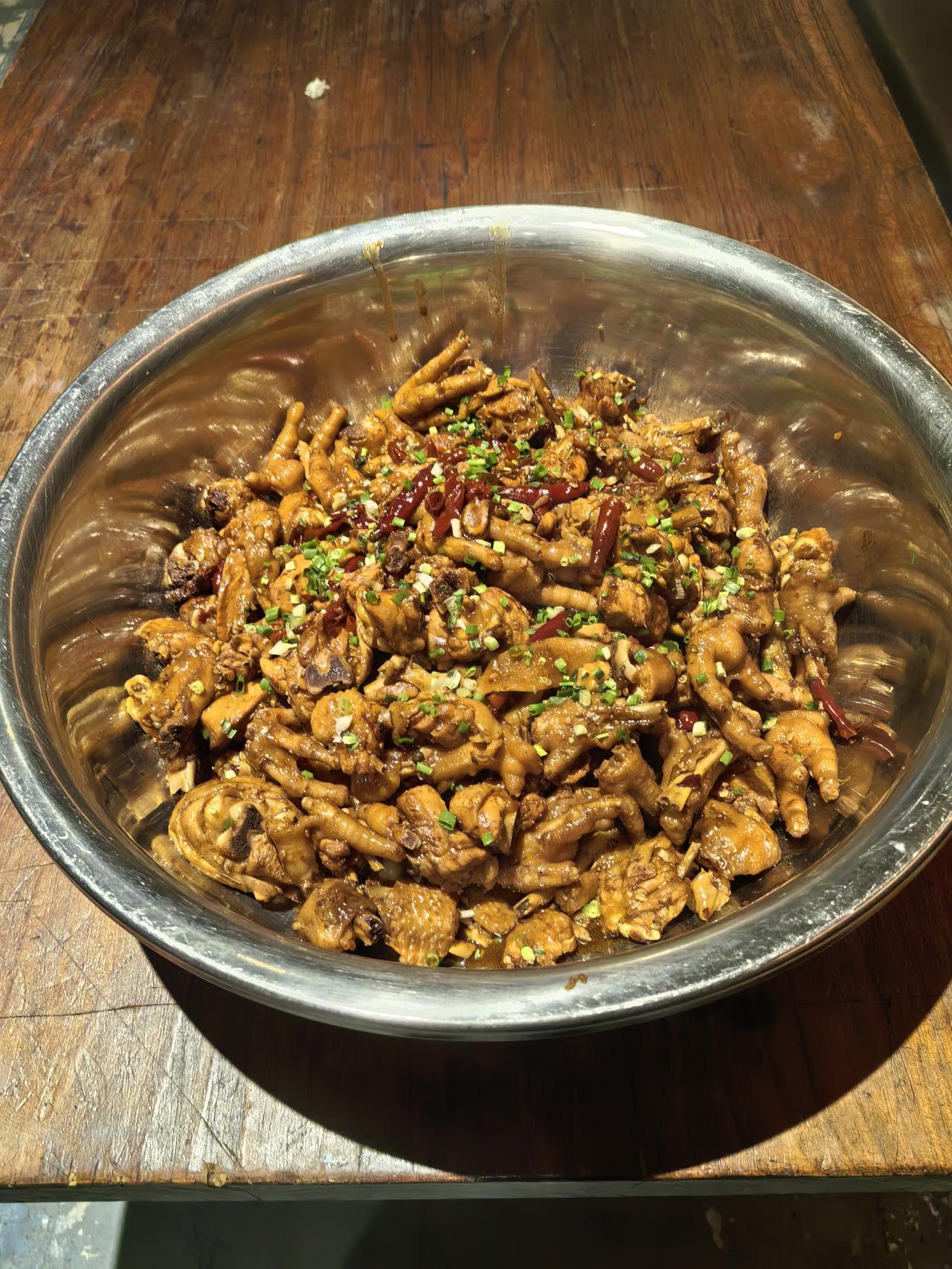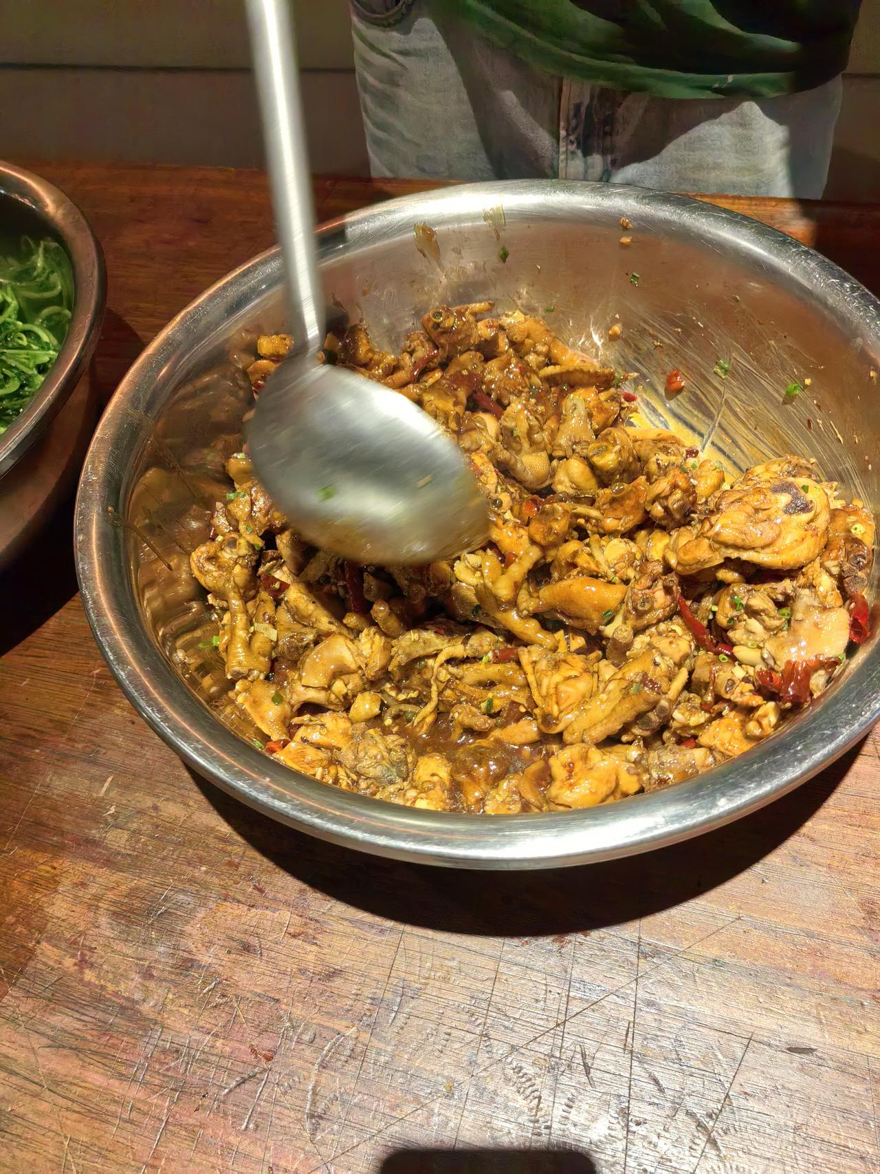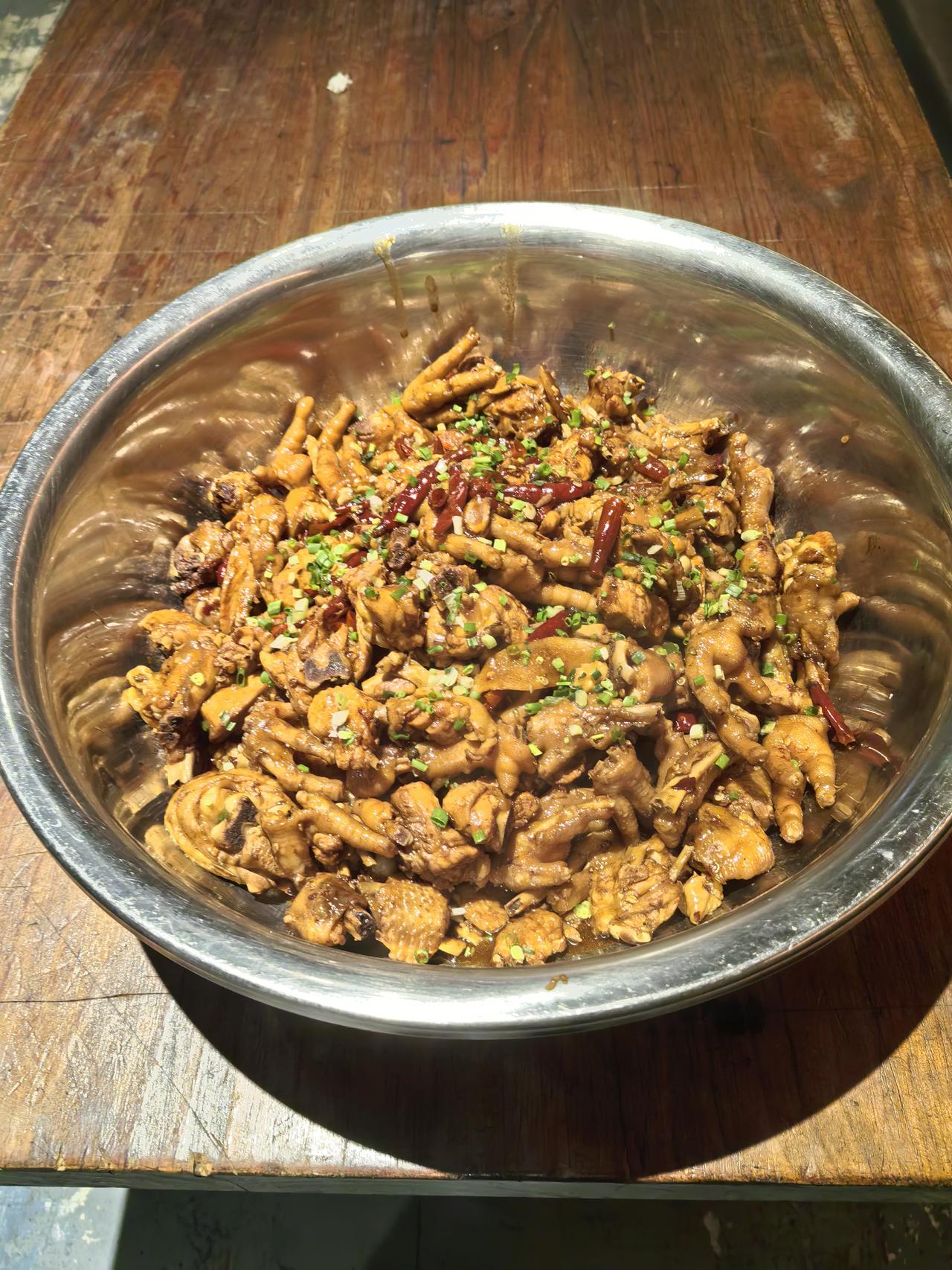 作为后厨掌勺多年的厨师,我的工作餐从不爱搞花架子——毕竟天天对着山珍海味,反而最馋一口家常的烟火气。今天中午的三道硬菜一上桌,隔壁档口的师傅都凑过来问:“你这鸡块能不能给我留块带皮的?” 先说这道红烧鸡块,绝对是打工人的能量补给站。选的是新鲜三黄鸡的腿翅部位,剁块后用温水泡掉血水,热油煸出鸡皮里的油脂,金黄焦香时加姜片、葱段、八角爆香,倒两勺老抽上色、一勺生抽提鲜,再放两颗冰糖炒出蜜色,加开水没过鸡块,大火烧开后转小火焖25分钟。最后开大火收汁时淋半勺料酒去腻,汤汁浓稠得刚好挂在鸡块上,带皮的部分糯叽叽,瘦肉块嫩到轻轻一抿就脱骨,连骨头缝里都浸满了酱香,配米饭能多吃半碗。 清炒萝卜菜是今天的“解腻担当”,选的是刚从菜市场运来的本地萝卜苗,嫩得掐尖时能掐出汁水。锅里烧开水,滴几滴油、撒少许盐,把萝卜菜放进去焯10秒就捞出来,挤掉多余水分备用。另起锅放少许猪油(重点!猪油炒青菜香翻倍),油热后下蒜末爆香,倒入萝卜菜快速翻炒15秒,加少许盐和一勺生抽调味就出锅。脆嫩的菜叶带着蒜香,入口清爽不涩,连吃几口都不觉得寡淡,刚好中和了红烧鸡块的浓郁。 最后是一碗番茄蛋汤,看似简单却藏着“鲜”的秘诀。番茄顶部划十字,用开水烫去皮,切小块后放锅里炒出沙,加开水煮开,让番茄的酸甜味充分融入汤里。然后淋入提前调好的蛋液——蛋液里加一勺清水和少许盐,这样煮出来的蛋花又嫩又散,像云朵一样飘在汤里。最后撒点葱花,滴两滴香油,喝一口酸甜暖胃,番茄的鲜和鸡蛋的香裹在一起,连汤碗都能舔得干干净净。 其实好的家常菜,从来不是靠复杂的调料堆出来的。就像这三道菜,食材普通、做法家常,却因为多了几分“用心”——鸡块焖够时间、萝卜菜掐准火候、蛋汤炒出番茄沙,就成了让同事羡慕的工作餐。毕竟对我们来说,能在忙碌的后厨间隙,吃一口热乎、对味的家常菜,就是最踏实的幸福啦。