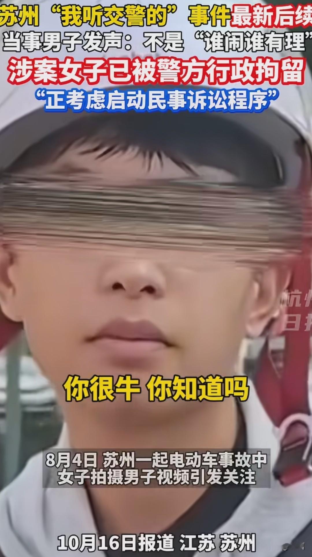 “我只听交警的”这件事后续来了! 这次是属于这个男生的胜利。 并不是谁的嗓门大谁就有理。 那名女子无理取闹侮辱男生,并拍摄视频广泛传播,现在警方把她给行政拘留了。真是大快人心! 一开始这名女生对男生各种挖坑引导,明明是自己的过失,却非要甩锅给这名男生。 还好这个男子遇事冷静,有理有据。一句“我只听交警的”让他立于不败之地!