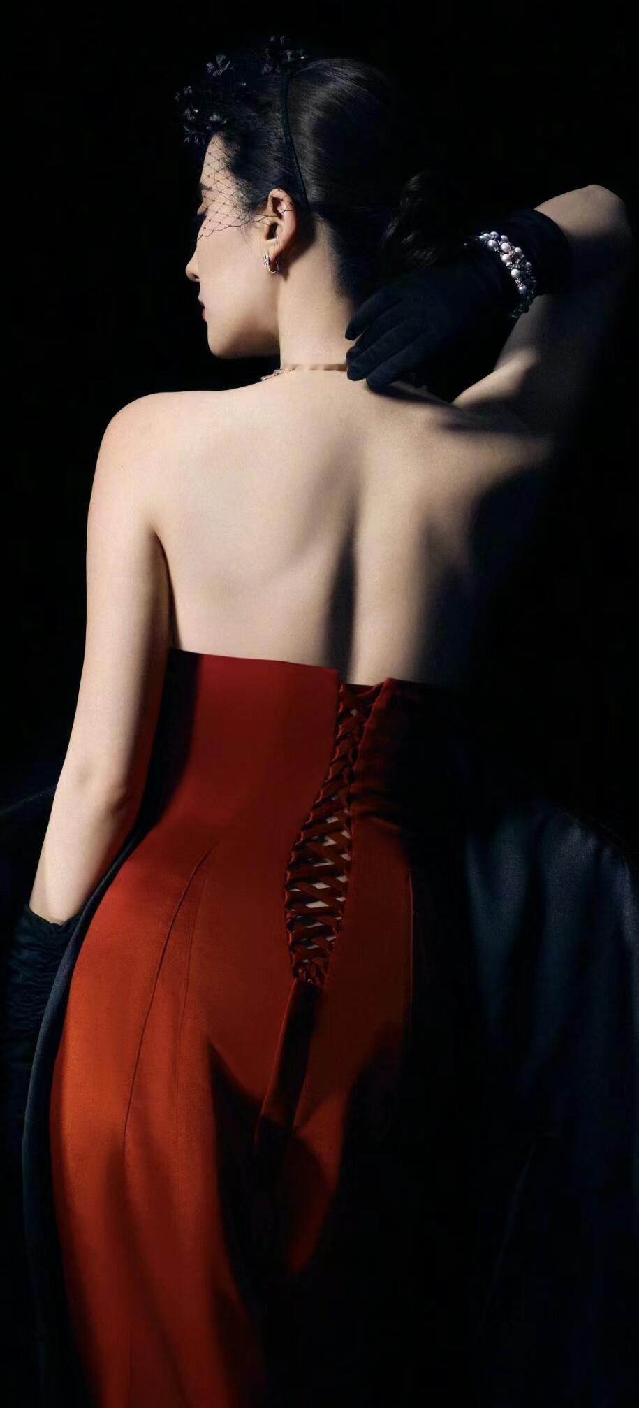 这就是女神刘亦菲的背, 用“背立盈盈故作羞”这句话来形容的话,还是挺贴切的。