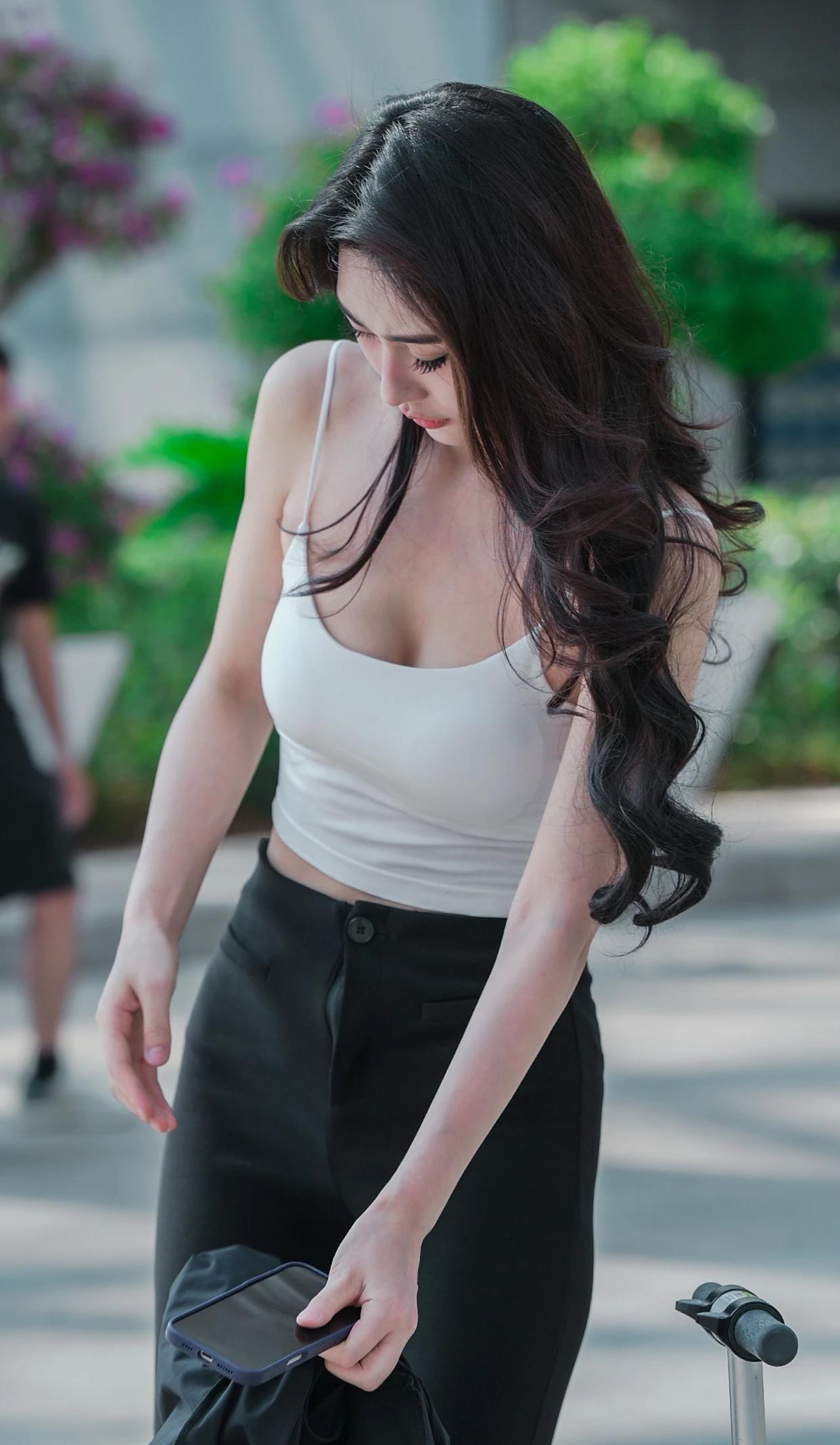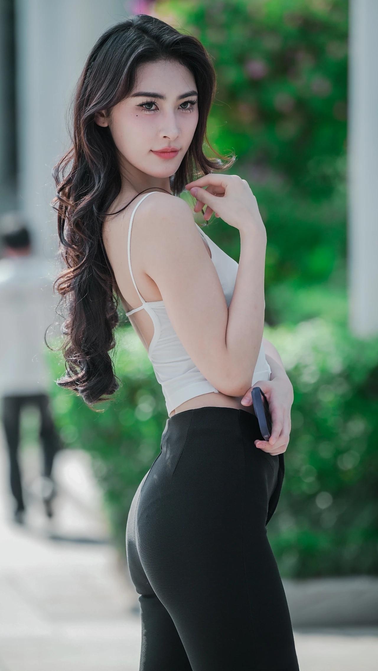 什么样的穿搭可以成为气质女神?精品街拍图片分享 怎样穿搭知性又显身材? 怎样完成气质风穿搭 潮流街拍晒图 白背心勾勒出随性之态,黑色裤装衬出飒爽之姿。每一缕卷发于阳光下轻盈跳跃,每一次回眸都藏着那不受定义的美。