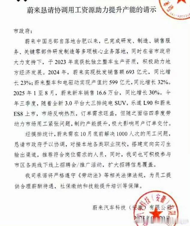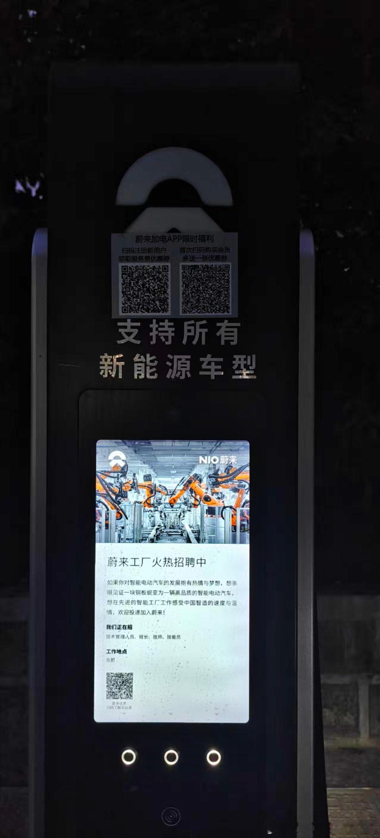 不仅蔚来的充电桩上都发布了工厂招工信息,蔚来还亲自向当地政府请求协调用工资源。[笑cry]
