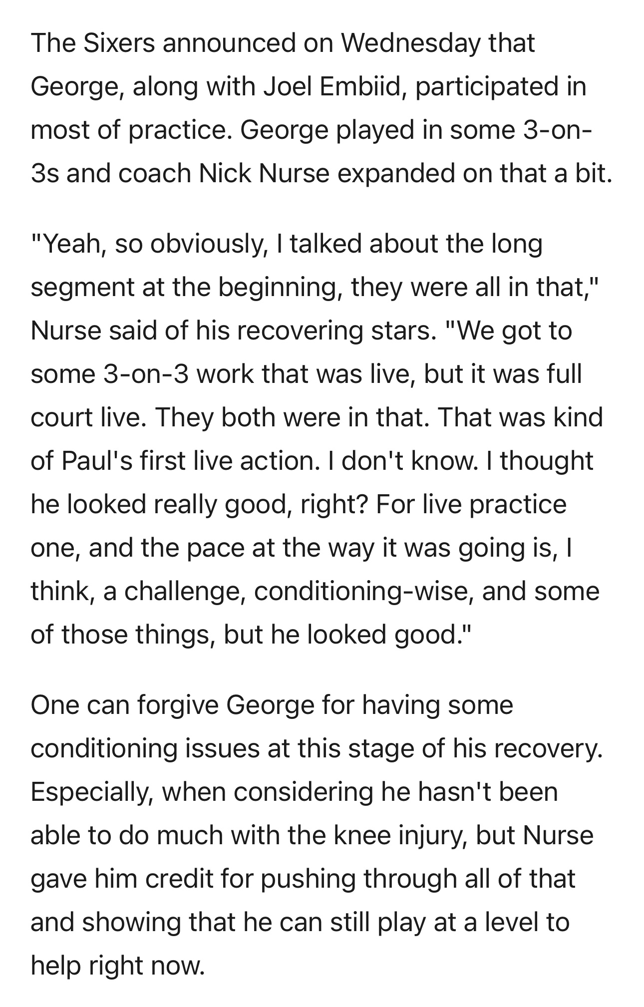译自费城记者Ky Carlin发布的最新采访文章,《76人队主教练尼克·纳斯谈及保罗·乔治在集训过程的伤病恢复进展》[围观]