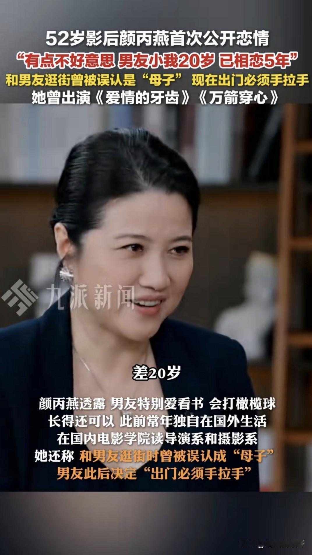 有女网友说颜丙燕 这会总算帮女人扳回一局 因为前段时间有个男人娶了一个小自己好多岁的老婆,最近52岁影后颜丙燕首次公开恋情,男友小她20岁,已相恋5年。这消息一出来舆论炸锅了,有人觉得是阿姨恋上小鲜肉。 但想想之前也有年纪大的男人娶小娇妻,大家都觉得是人生赢家。而女星恋爱就容易被骂被笑,像金莎、刘晓庆都经历过。这次女网友说帮女人扳回一局,还挺有道理。只不过怎么看都有点像是在转移某导演娶妻事件的注意力。
