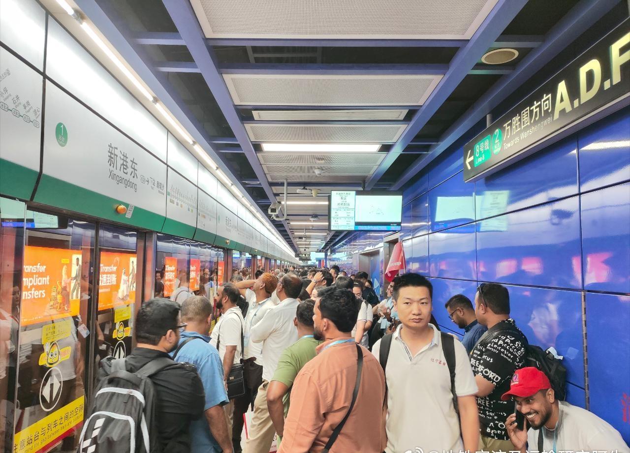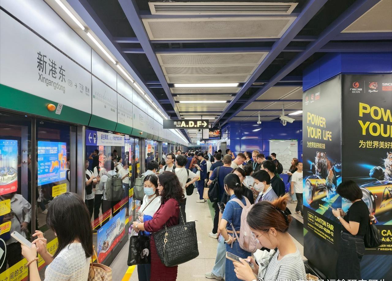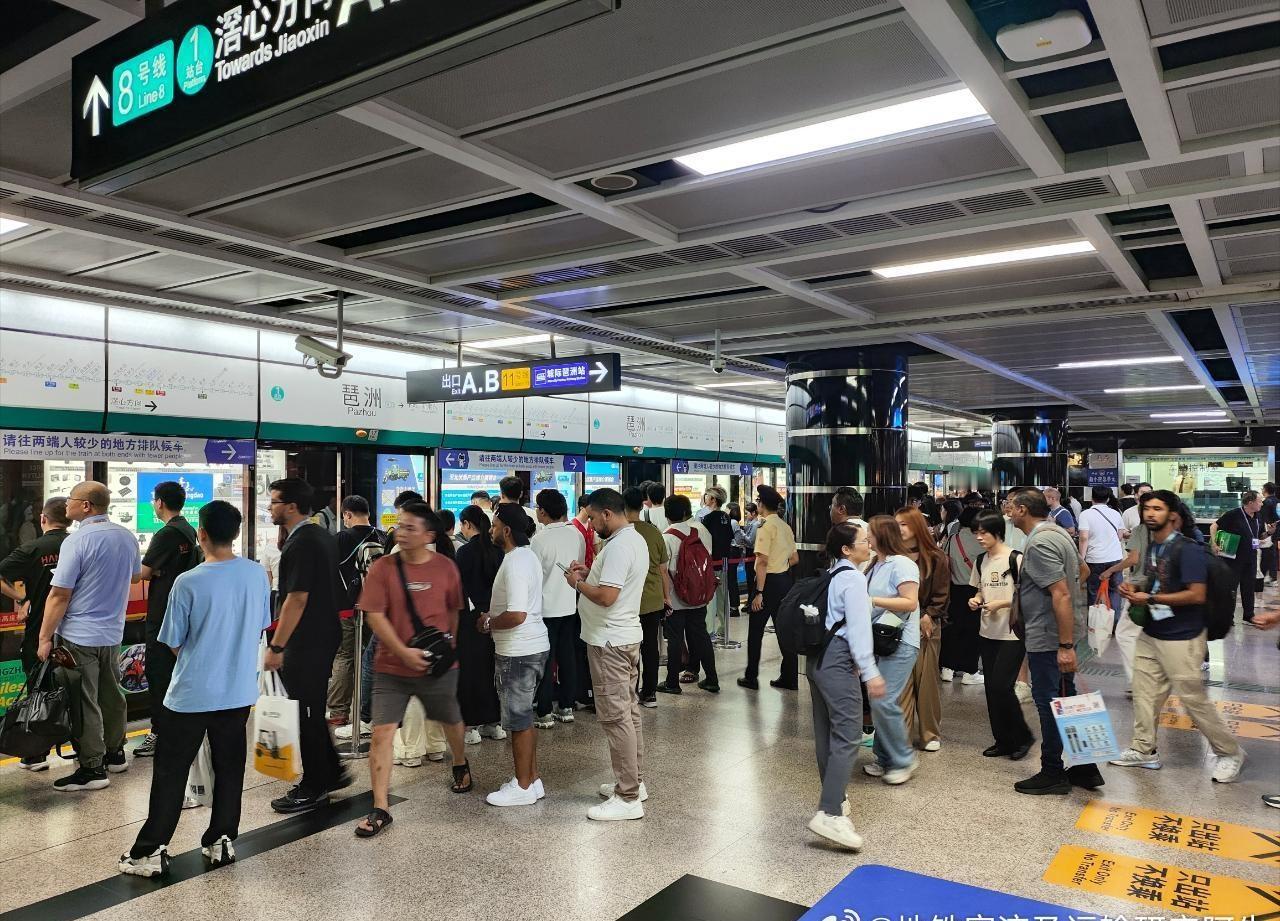 图1~图6为广州地铁8号线(6A)客流画面: 图1,17:48新港东站A口进站客流; 图2、图3,17:51新港东站1站台(聚龙、滘心方向)候车客流; 图4,17:55新港东站2站台(万胜围方向)候车客流; 图5,17:56新港东→琶洲客流; 图6,18:00琶洲站1站台(聚龙、滘心方向)候车客流。 图7~图9为广州地铁11号线(8A环线)客流画面: 图7,18:14琶洲站站厅进站客流; 图8,18:21琶洲站3站台(外环方向)候车客流; 图9,18:24琶洲→员村客流。 ——今日继续有第138届广交会的客流加持,广州地铁总客流能上多少?986→996?