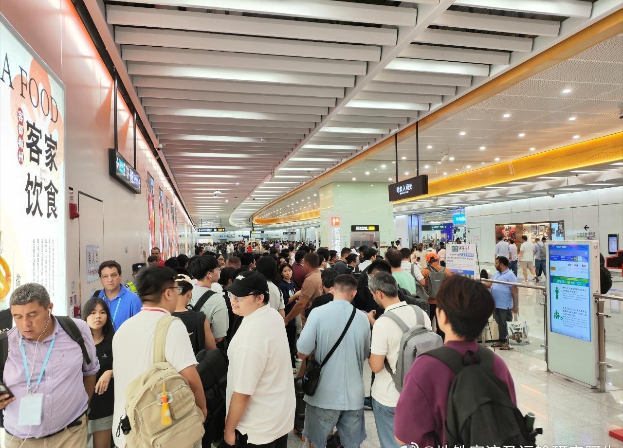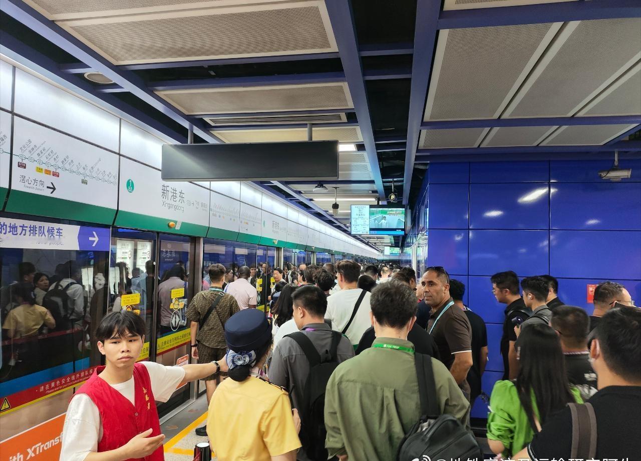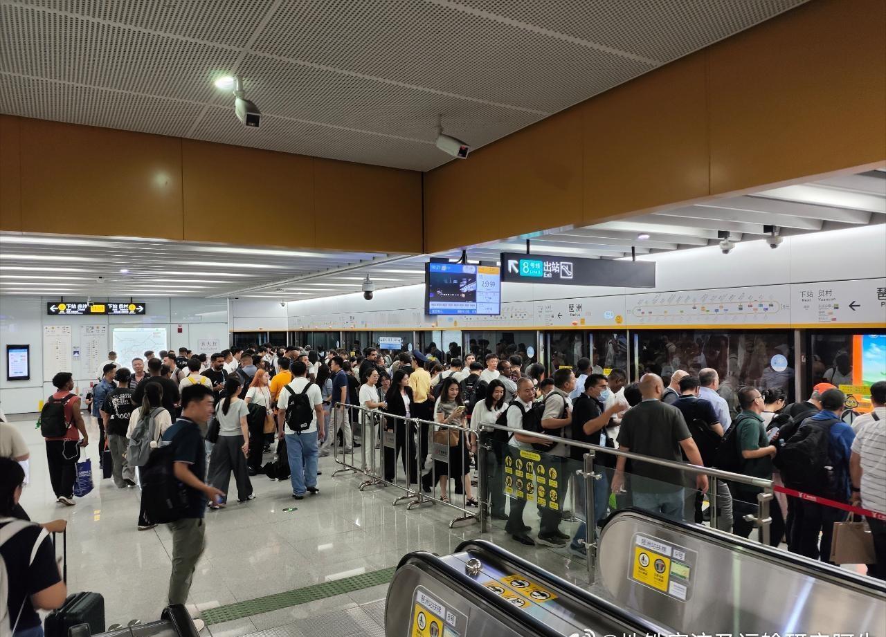 图1~图6为广州地铁8号线(6A)客流画面: 图1,17:48新港东站A口进站客流; 图2、图3,17:51新港东站1站台(聚龙、滘心方向)候车客流; 图4,17:55新港东站2站台(万胜围方向)候车客流; 图5,17:56新港东→琶洲客流; 图6,18:00琶洲站1站台(聚龙、滘心方向)候车客流。 图7~图9为广州地铁11号线(8A环线)客流画面: 图7,18:14琶洲站站厅进站客流; 图8,18:21琶洲站3站台(外环方向)候车客流; 图9,18:24琶洲→员村客流。 ——今日继续有第138届广交会的客流加持,广州地铁总客流能上多少?986→996?