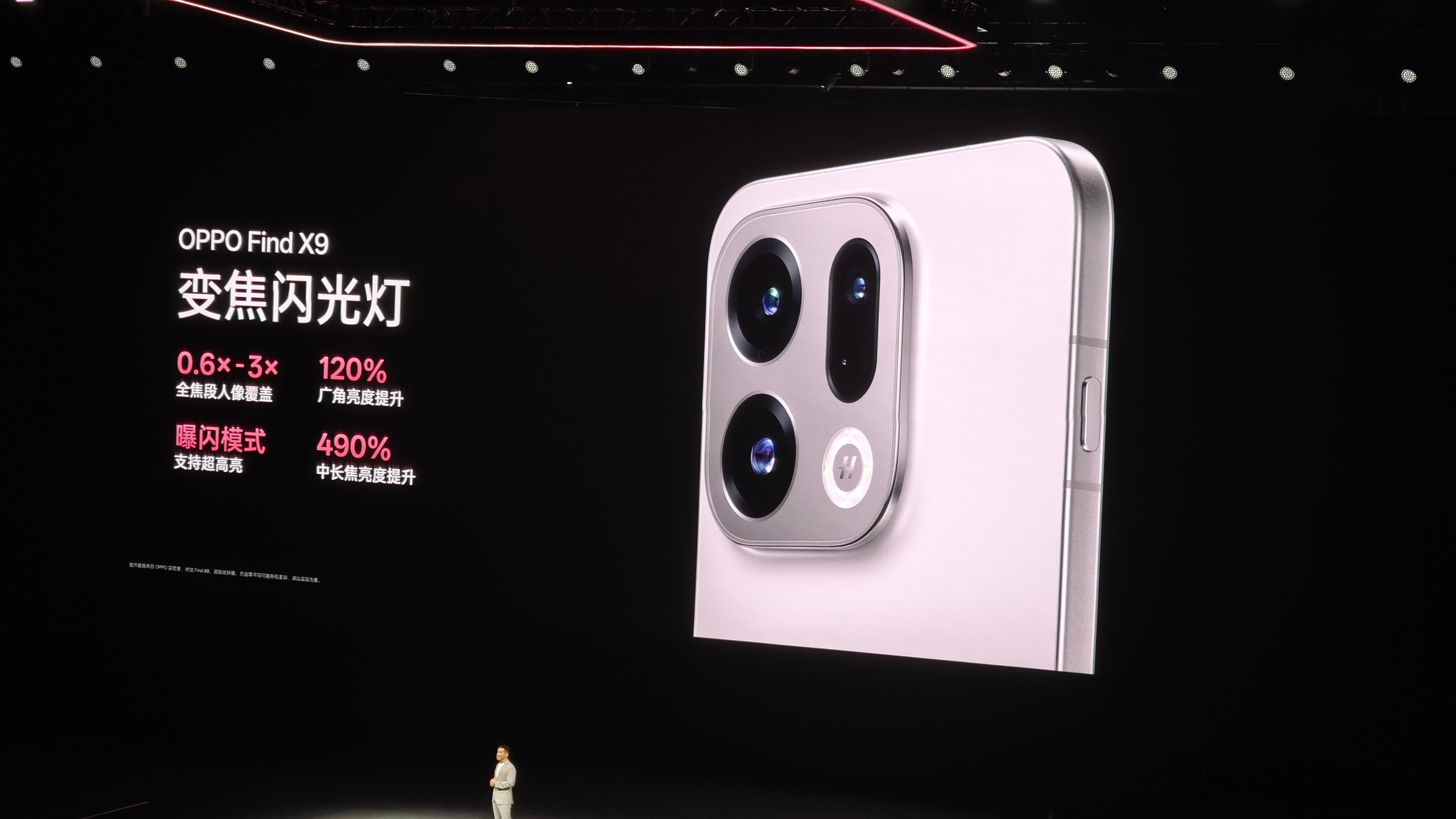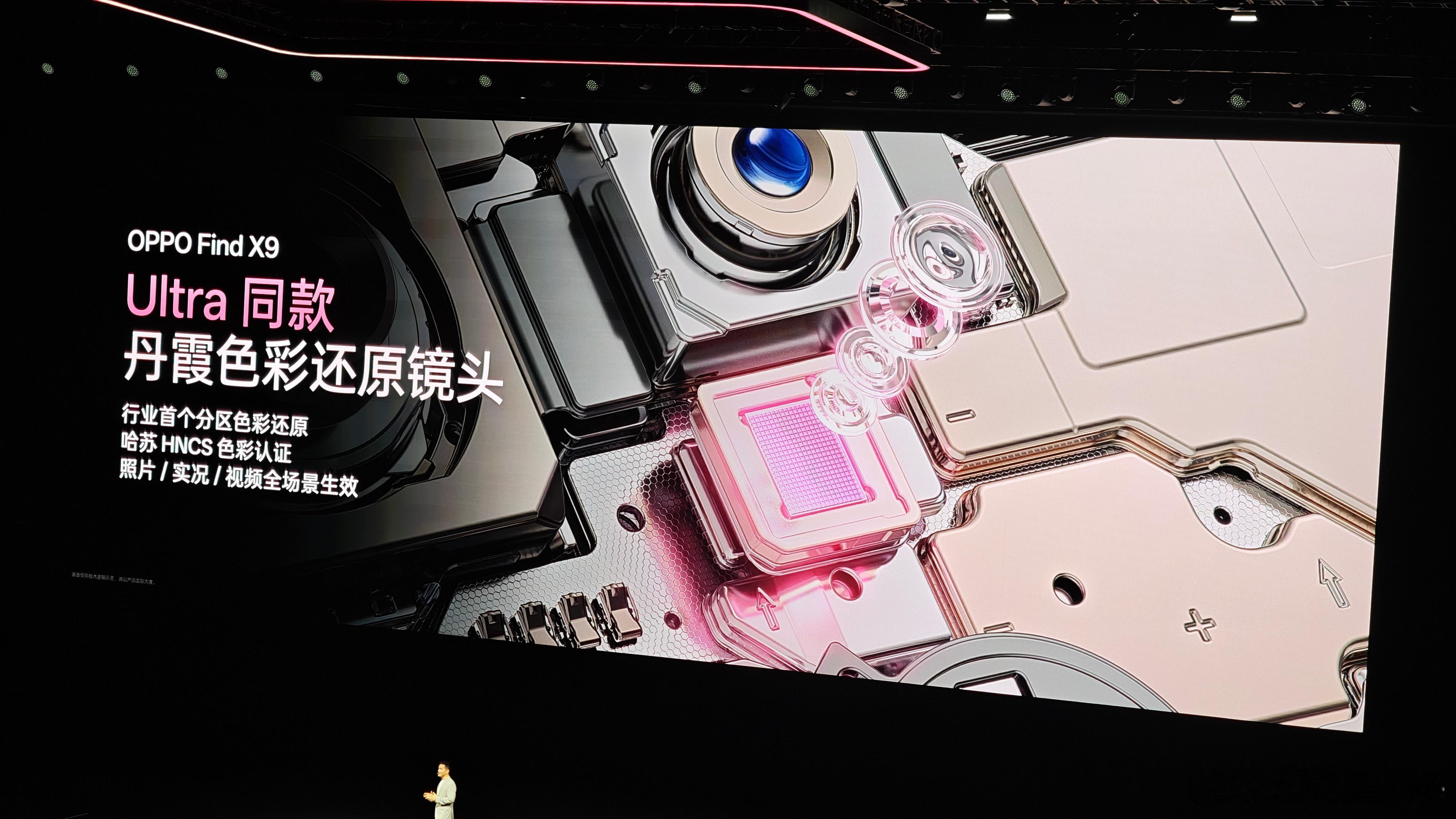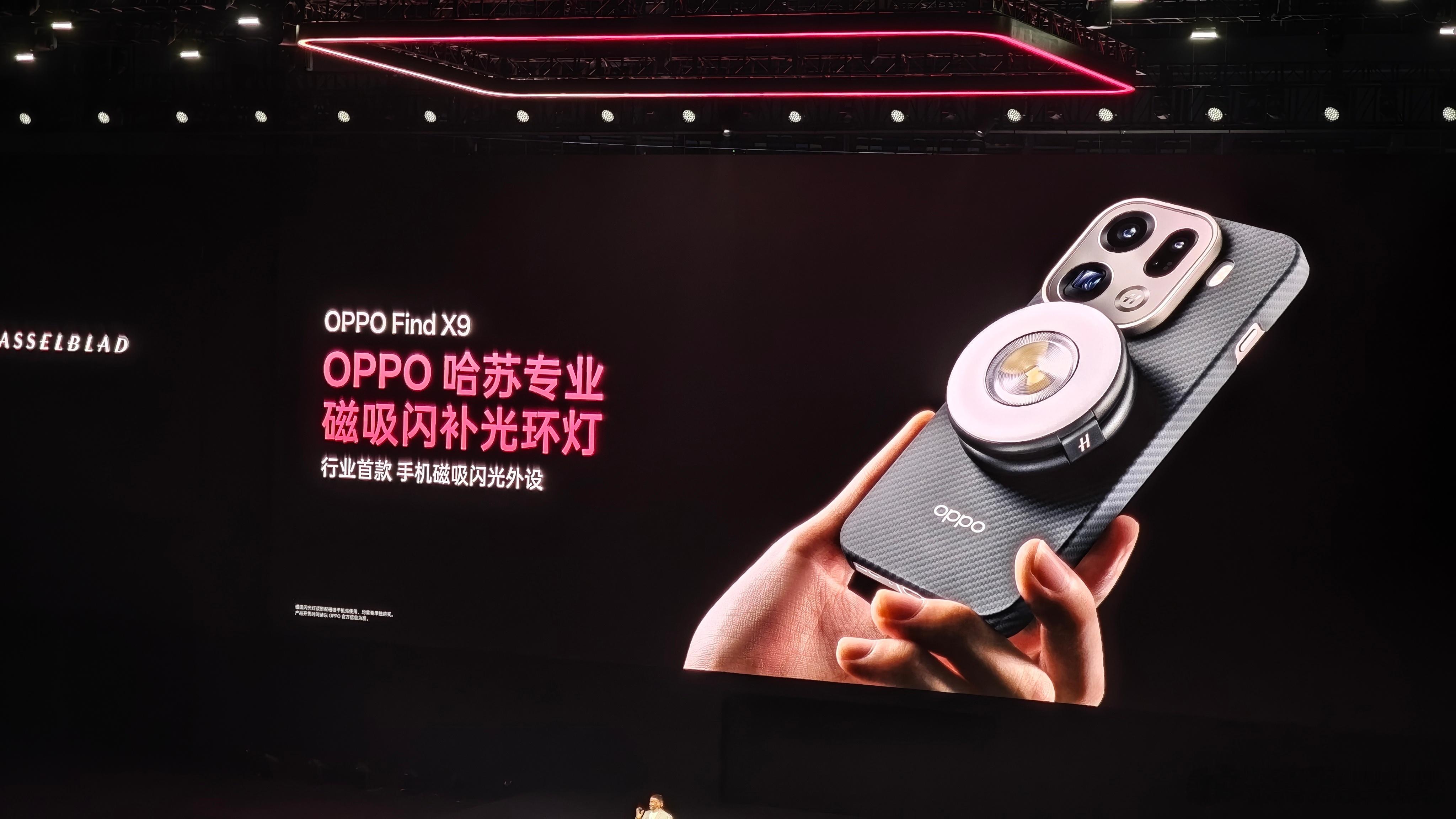OPPO Find X9搭载Ultra同款丹霞色彩还原镜头,还有变焦闪光灯,以及OPPO哈苏专业磁吸闪补光环灯。