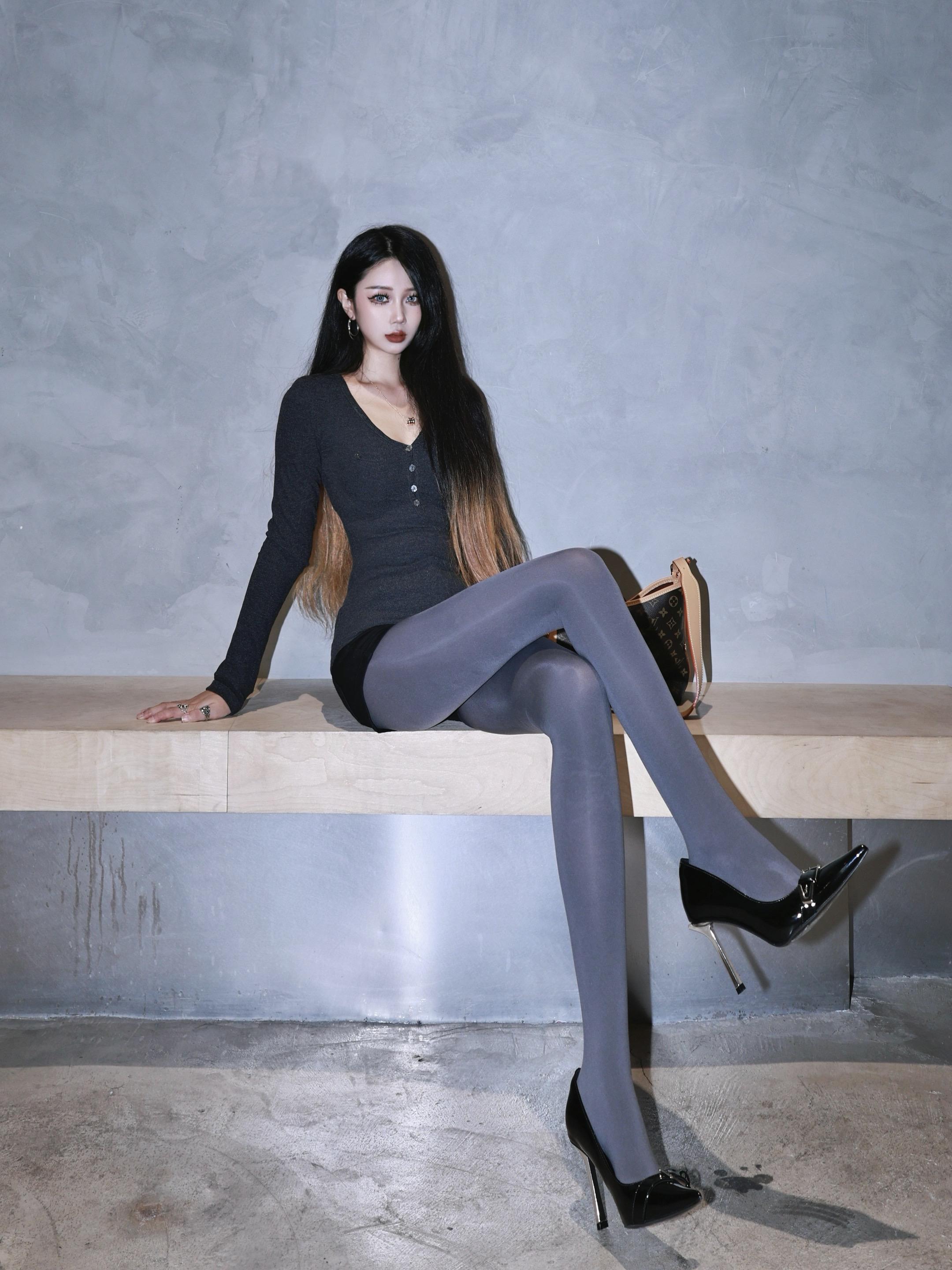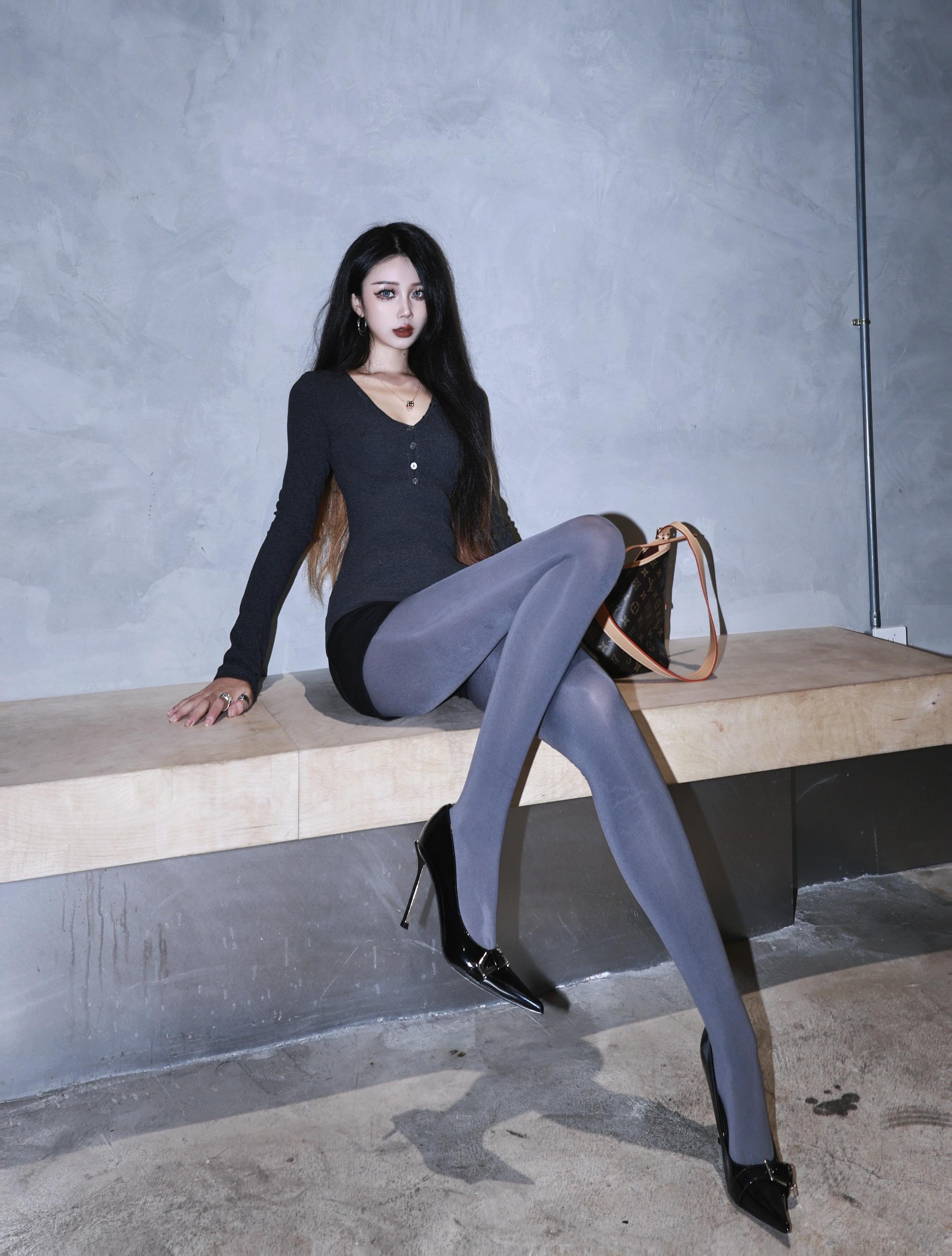今天是格雷系穿搭~又到了穿灰色连裤袜的季节~