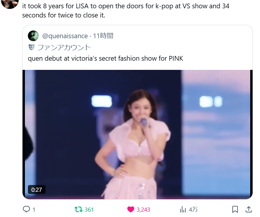 L花了8年时间为K-pop打开了维密秀的大门,而T仅用34秒就关上了它。[泪奔]