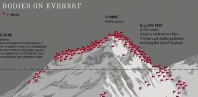 搬运尸体下山要7万美元/具,目前珠峰上有340多具尸体,去年的春季又新增12具遗体。图4的一面小红旗代表一具尸体,越接近峰顶尸体分布越密集。海拔超过8000米后,人体会进入缺氧、严寒、脑水肿风险飙升,一旦倒下几乎无法获救。珠峰是很多人的梦想之地,也是全球海拔最高的“露天坟场”。 为啥山上会堆这么多尸体?因为这地方的自然条件实在太“绝情”。珠峰8000米以上的“死亡地带”,氧气只有地面的三分之一,吸一口氧就像隔着湿棉花喘气,走路得一步一挪,稍微快一点就头晕眼花。温度能降到零下四十度,连呼出的哈气都能瞬间冻成冰碴子,手要是露在外面几分钟,就可能冻得发黑失去知觉。 更要命的是高反,突然就会头疼、呕吐、脑子发胀,这就是脑水肿的前兆,倒下了就再也醒不过来——不是没人想救,是救的人自己在这儿都难保性命,只能眼睁睁看着同伴留在原地。 再加上现在登山的人越来越多,风险自然就大了。2024年光是尼泊尔那边就有787人登顶,疫情前更夸张,一年能有八百多人往上冲。以前登山都是专业选手的事,现在不一样了,只要攒够钱,找个商业登山队,普通人也能跟着去。可好多人没经过系统训练,对自己的体力估计不足,又太想拿“登顶勋章”,明明身体已经报警了还硬撑。 1996年那次大事故就是例子,十几支队伍挤在窗口期登顶,路绳没及时架好,大家在8000米以上多等了俩小时,氧气耗光了又遇上暴风雪,一天就没了8个人,这些尸体后来就留在了山上。 天气也是个“不定时炸弹”,珠峰的天气比变脸还快,前一秒还晴天,下一秒就刮起时速上百公里的暴风雪,能见度不足一米。登山者都赶在春季的“窗口期”冲顶,这时候人最多,一旦遇上天灾,根本来不及撤。有个叫道格的美国人,前一年差一点登顶,第二年非要再试,明明向导劝他赶紧下山,他还是要往上爬,结果被暴风雪困住,最后没了气息。这种“赌一把”的心态,在珠峰上往往就是一条绝路。 这么多尸体留在山上,真不是没人想管,实在是清理起来比登天还难。先说说那7万美元的搬运费,可不是乱要的。高海拔根本用不了机器,全得靠夏尔巴向导人力抬,这些最熟悉山路的本地人,在“死亡地带”走路都得小心翼翼,抬着几十斤重的尸体更是步步惊心。 2019年尼泊尔军队组织清理,55天拼尽全力,也才运下来4具尸体,还顺带清理了11吨垃圾,可见有多费劲。而且搬运本身就危险,1984年有两个救援者就是因为抬尸体,不小心摔下悬崖没了命,后来更没人敢轻易干这活儿了。 技术上也卡着脖子,有人说能不能用直升机吊下来?根本不行。8000米以上空气太稀薄,直升机的螺旋桨抓不住空气,产生的力气不够,飞不上去不说,就算勉强飞到7000多米,遇上突然的强风也得机毁人亡。至今还没有直升机能在珠峰峰顶附近安全作业,这技术难关到现在都没攻破。 更麻烦的是,好多尸体已经和大山冻在一起了。全球变暖让积雪慢慢融化,以前埋在冰里的尸体露了出来,可冻了几十年的尸体硬得像石头,和冰雪、岩石粘在一起,强行挖不仅会破坏尸体,还可能引发雪崩,把清理的人也卷进去。夏尔巴人还把珠峰当成“圣母”,觉得逝者是被山神守护的,从文化信仰上就不愿意触碰遗体,这也让清理工作少了最关键的人手。 还有些家属的想法也不一样,有人觉得亲人既然把珠峰当成梦想,留在那儿就是最好的归宿,不想让他们死后还被折腾。2023年有个夏尔巴向导遇难,他的家人就没要求回收遗体,觉得这是对逝者的尊重。咱们中国西藏这边还好,每年会组织清理队尽量运下尸体,但尼泊尔那边登山的人多,尸体攒得也多,加上资金有限,根本清不过来。 说到底,珠峰上的每具尸体,都是自然的残酷和人类的执念碰在一起的结果。不是不想清理,是真的没钱、没技术,还得冒着更多人丧命的风险,有时候还要顾及逝者和家属的心意。这些留在山上的遗体,成了最沉重的“路标”,提醒着每个往上冲的人:梦想再珍贵,也得先掂量掂量自己的命,毕竟大山可不会因为谁的执念就手下留情。