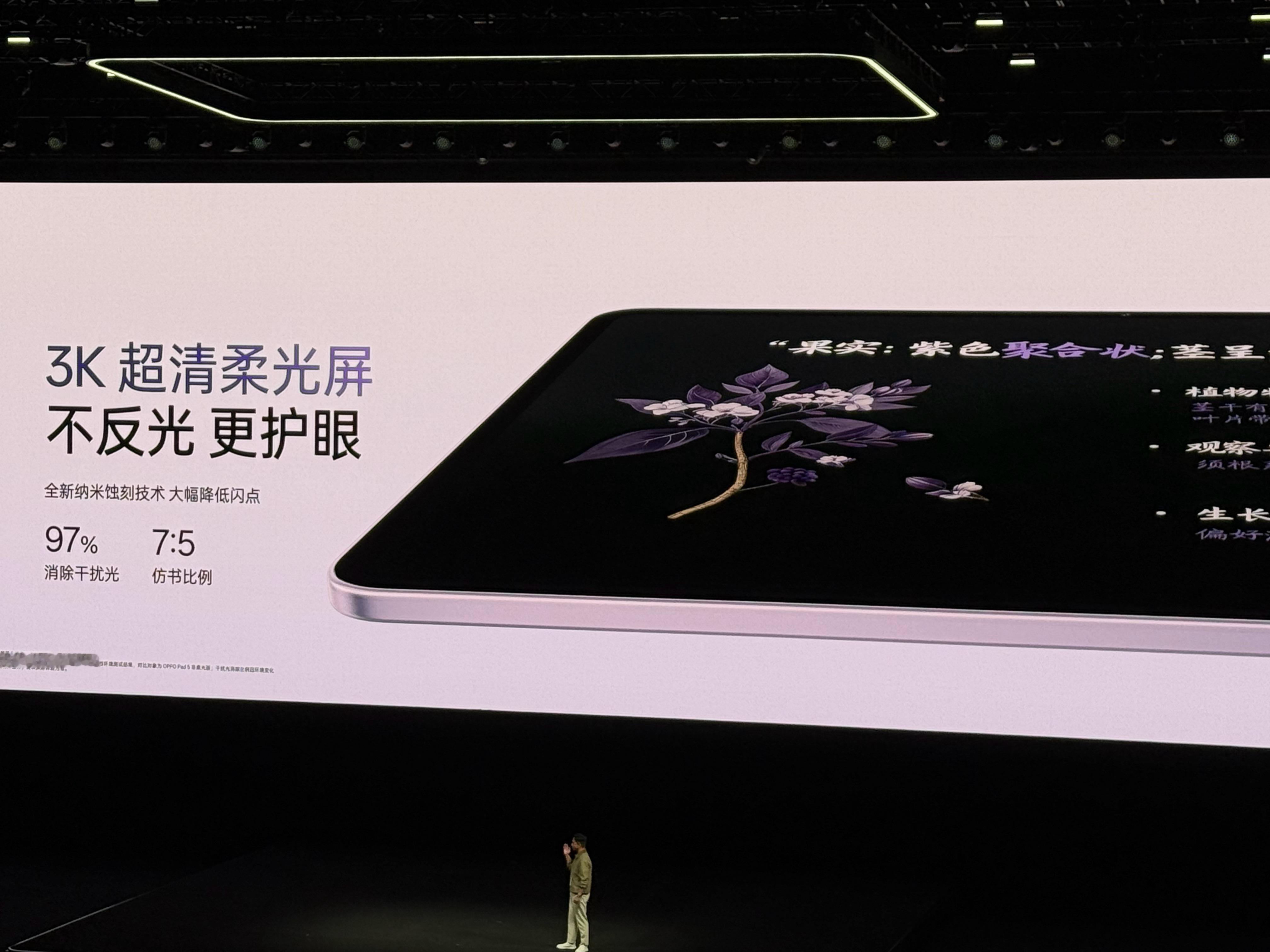 OPPO Pad 5 搭载了3K超清柔光屏,全新纳米蚀刻技术,好评!好清晰!oppo发布会