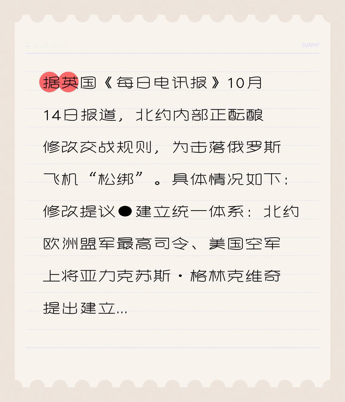 据英国《每日电讯报》10月14日报道,北约内部正酝酿修改交战规则,为击落俄罗斯飞机“松绑”。具体情况如下: 修改提议 ●建立统一体系:北约欧洲盟军最高司令、美国空军上将亚力克苏斯·格林克维奇提出建立“统一的防空与导弹防御体系”,消除各成员国在交战规则上的差异。当前部分成员国在开火标准上存在分歧,如有的要求飞行员先目视确认威胁,有的则可依据雷达数据行动。 ●明确威胁判定:新规则讨论聚焦于明确认定俄方飞机“构成威胁”的情形,“武器装备与飞行轨迹”是关键判定依据。多国防长提出,在北约空域飞行并携带对地攻击导弹的俄战机可列为打击目标。 各方表态 ●北约秘书长:10月15日北约防长会议在布鲁塞尔召开,北约秘书长马克·吕特称成员国已“拥有所有必要的授权”击落构成威胁的目标,同时强调不会在北约领空击落不构成威胁的飞机。 ●俄罗斯:俄方否认侵犯北约领空指控,指责北约支持乌克兰加剧紧张局势。俄外交部警告北约降低开火门槛是“玩火”,会增加误判风险,俄方将对等反制。若北约击落俄飞机,俄方或采取打击北约东欧军事基地、切断欧洲能源供应,甚至升级核威慑等报复措施。 事件背景 爱沙尼亚上月指责俄战机“侵犯领空”,并请求北约启动《北大西洋公约》第四条进行磋商。此前,波兰、芬兰等国也有类似指控,但俄方均予以否认。 面临障碍 北约全面修改交战规则可能性目前有限。一方面成员国意见存在分歧,德国、法国等主要国家担心局势升级,美国态度也较矛盾;另一方面,判断“非法闯入”与“构成威胁”的标准模糊,易导致误判。俄北约对抗 北约轰炸俄罗斯 俄对北约开战 北约战略规划 北约战机 北约战略失败 北约对俄政策