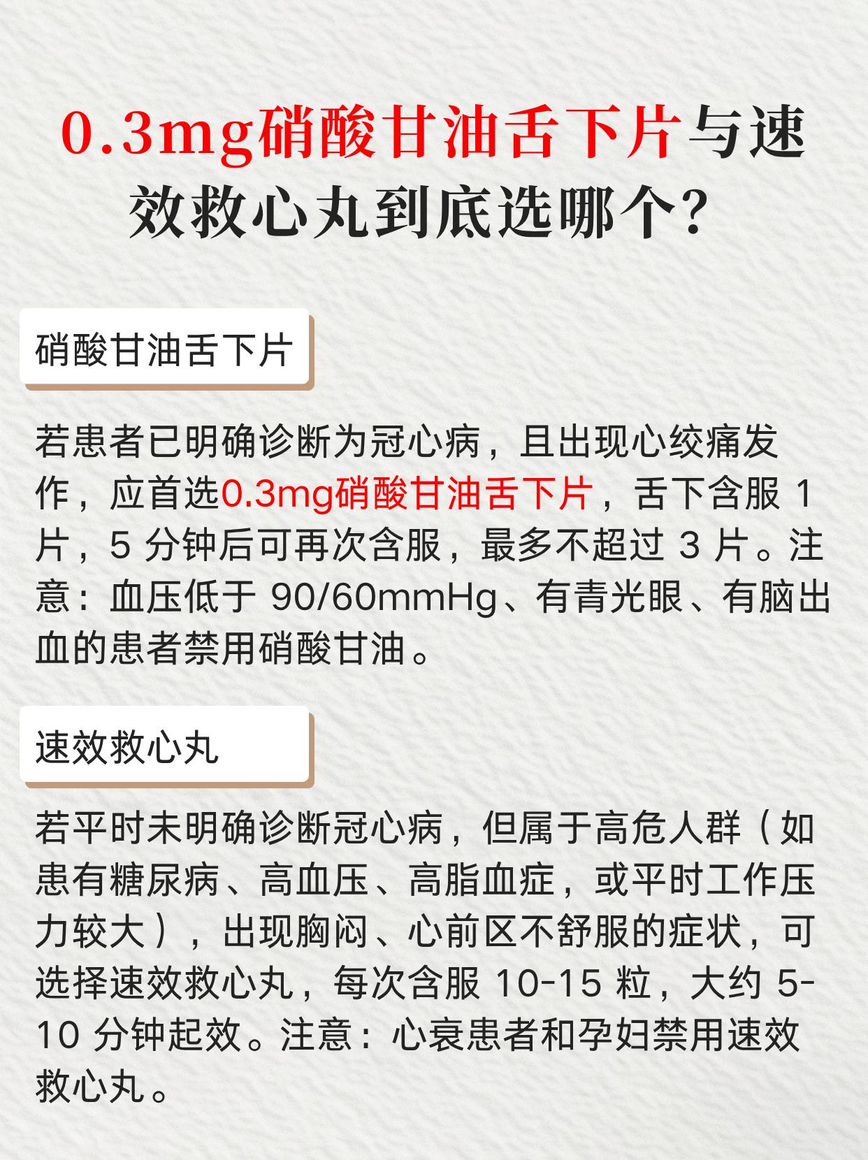 如何正确预防心绞痛,有什么好的办法?0.3mg硝酸甘油舌下片与速效救心丸到底选哪个?这期为你解答。