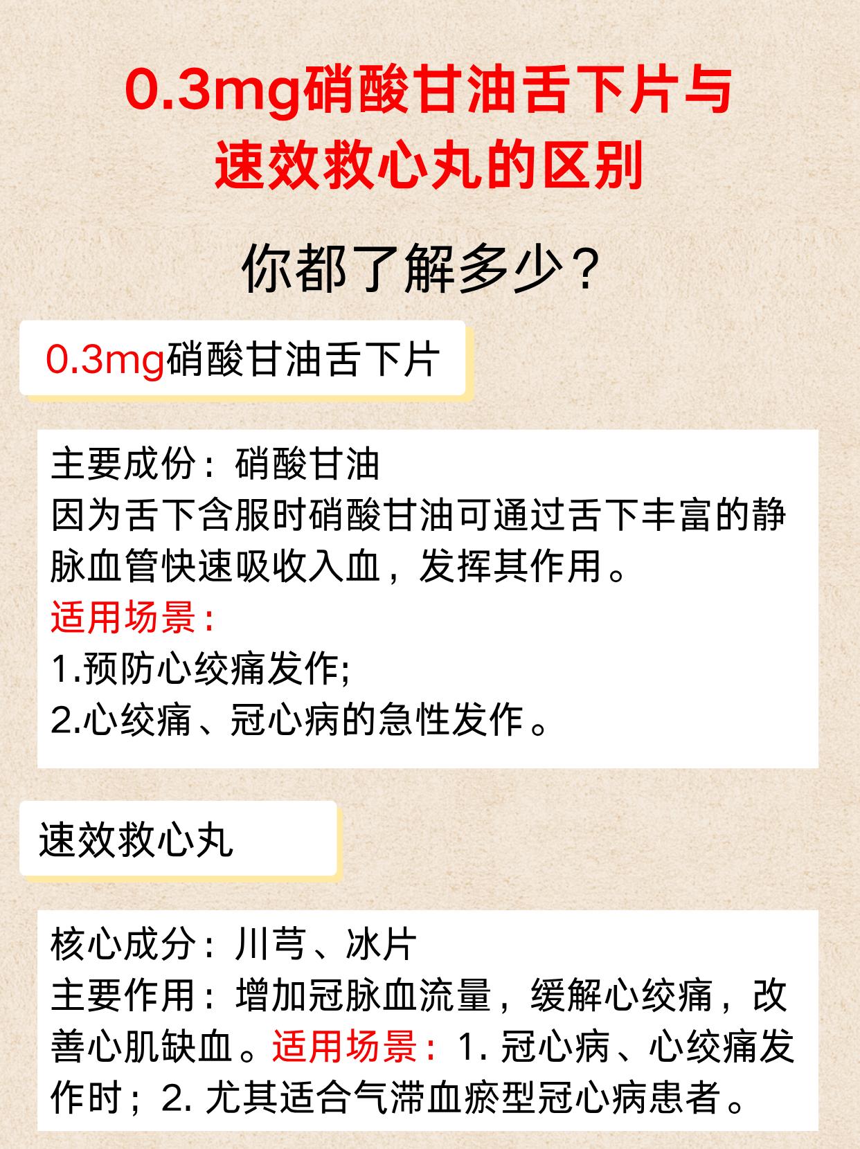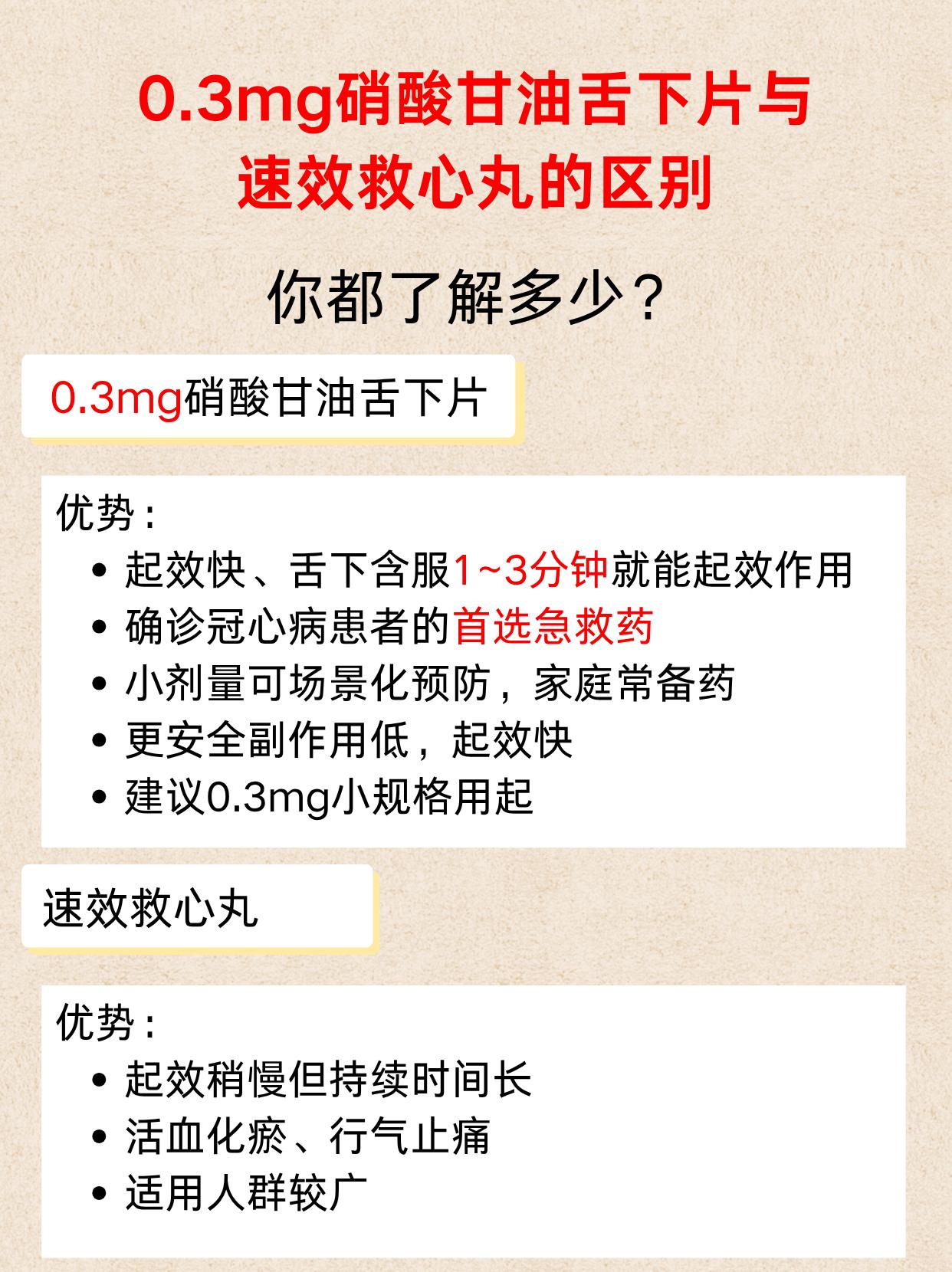 0.3mg硝酸甘油舌下片和速效救心丸的区别。你都了解多少?在心绞痛发作时该如何选择,硝酸甘油舌下片和速效救心丸各有什么优势?