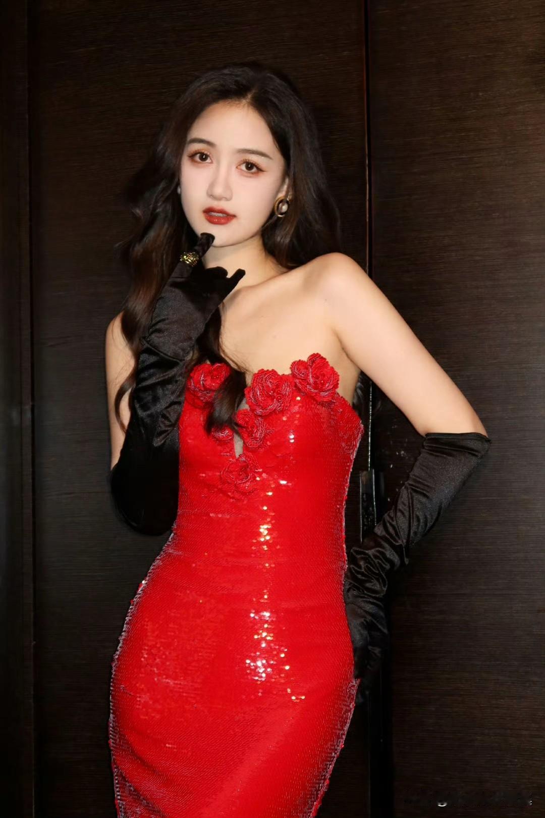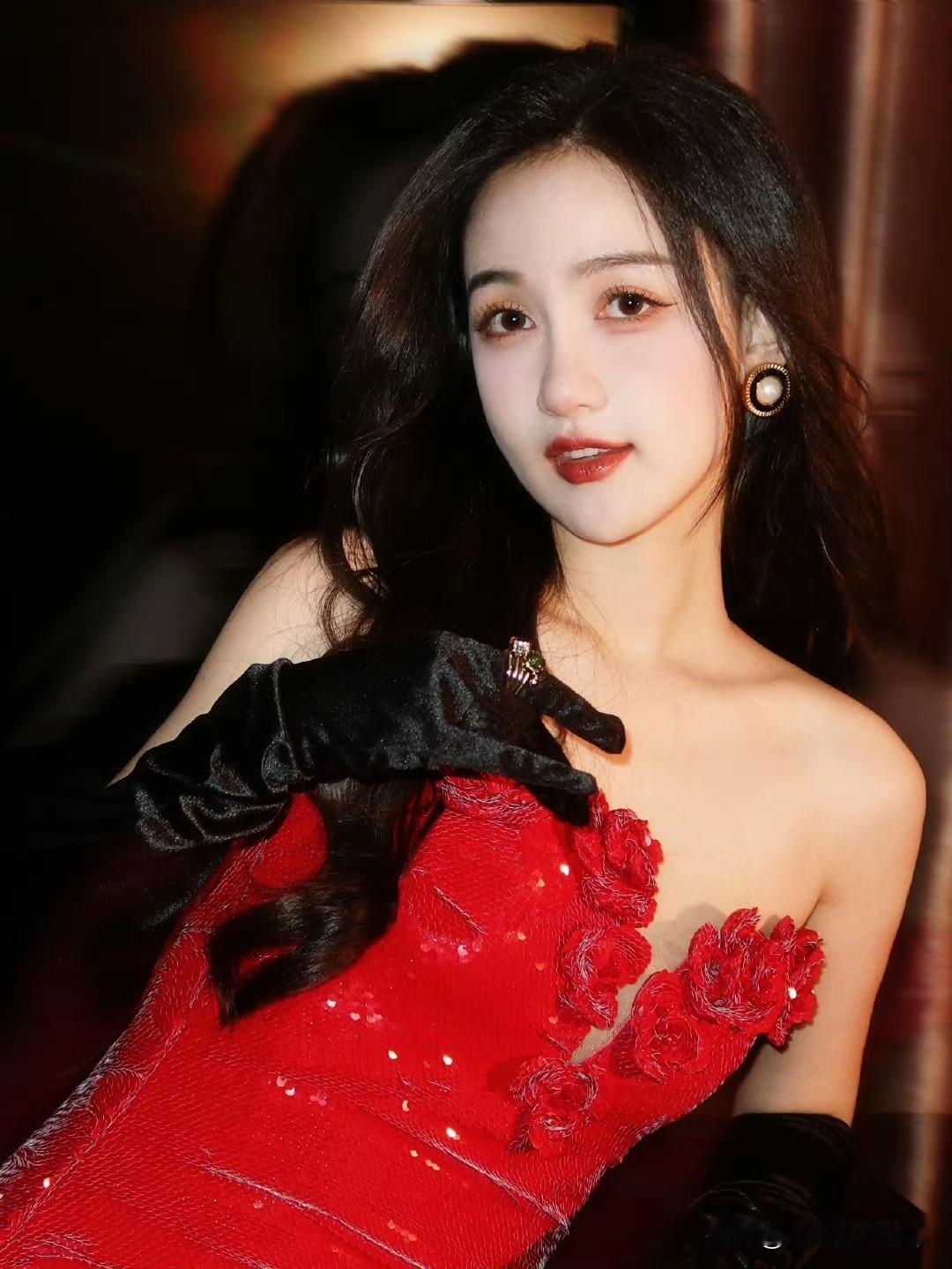 想穿得淑女一点,黄羿这身章丹色挂脖礼裙就是绝佳示范。黄羿1997 年出生在四川成