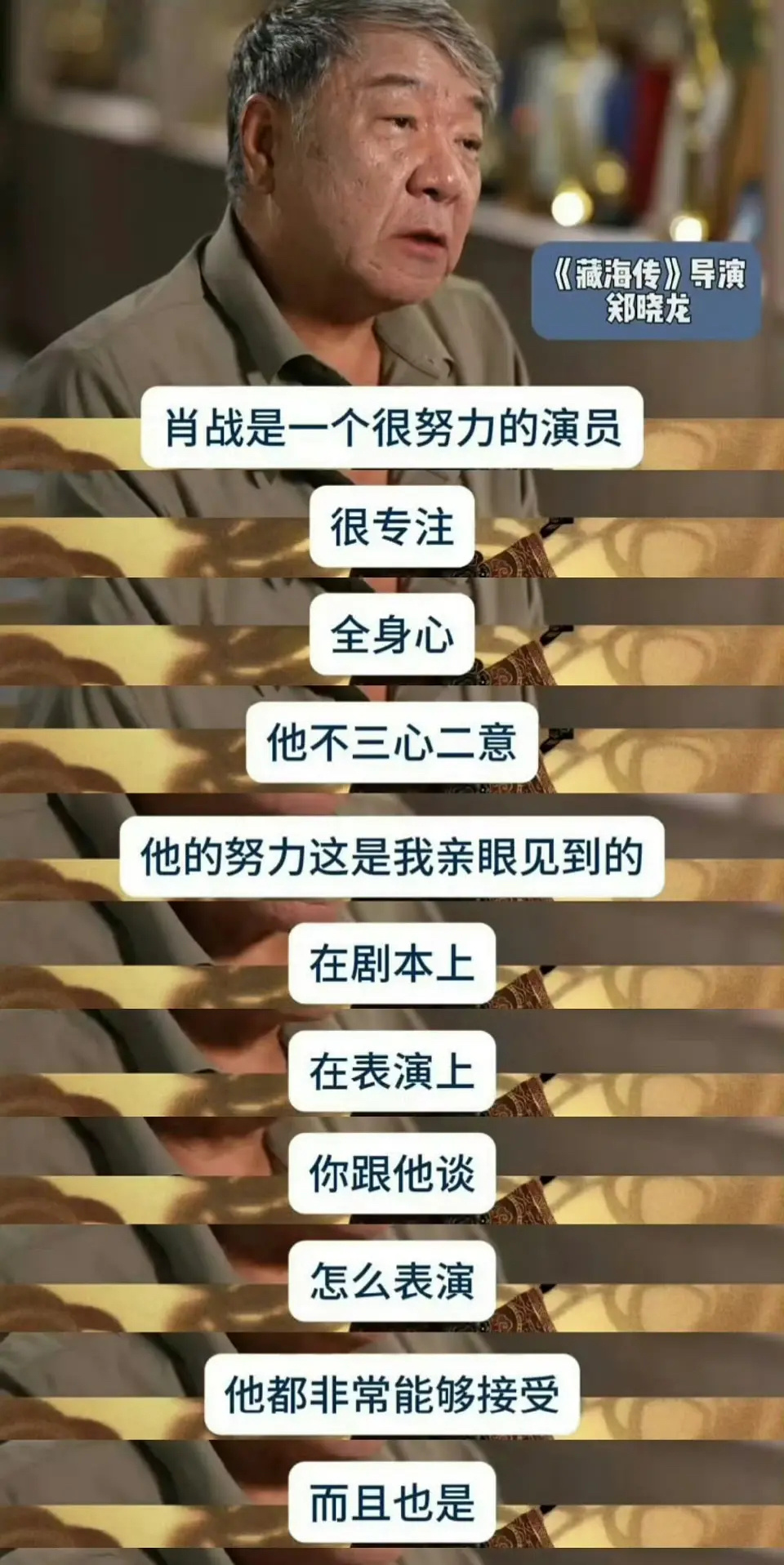 郑晓龙导演真的是对肖战全肯定,也真是的,天天夸肖战,拍戏的时候夸,拍完了还夸[送