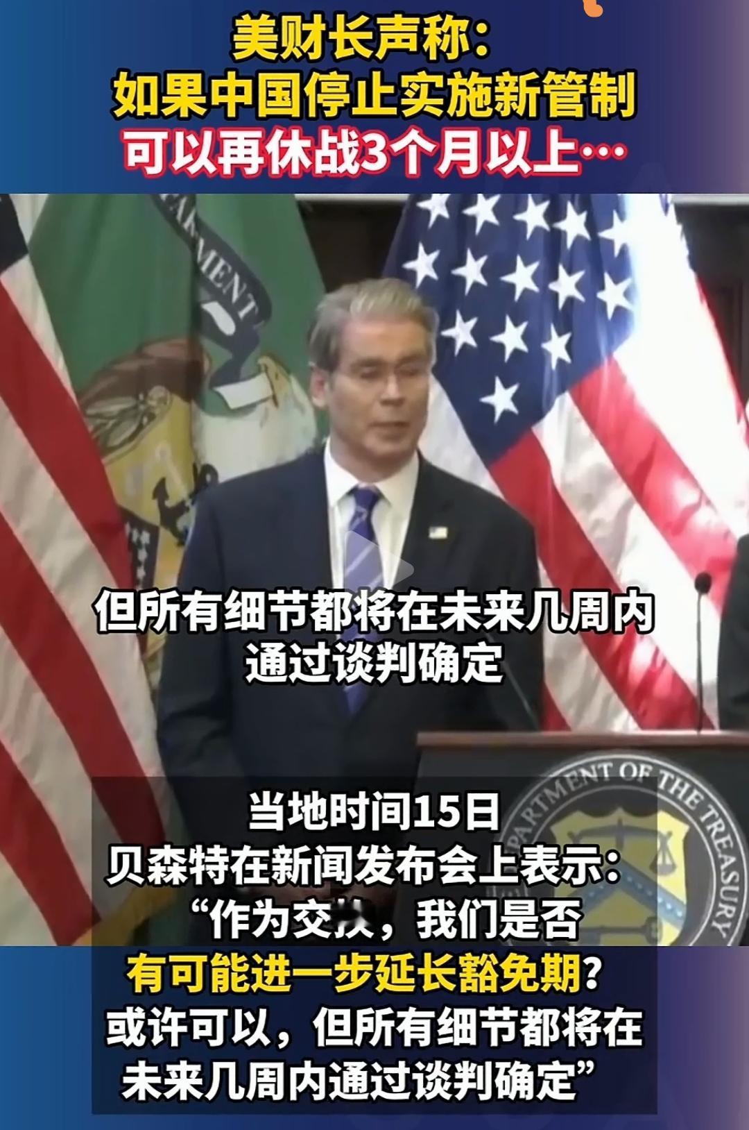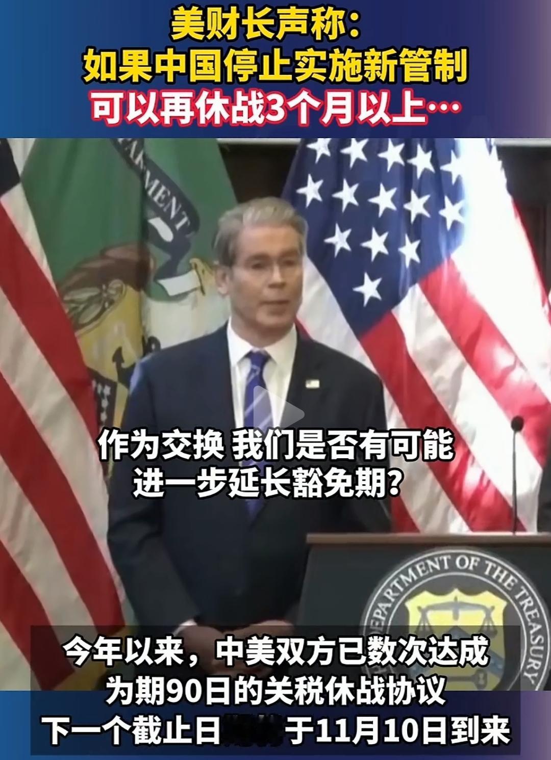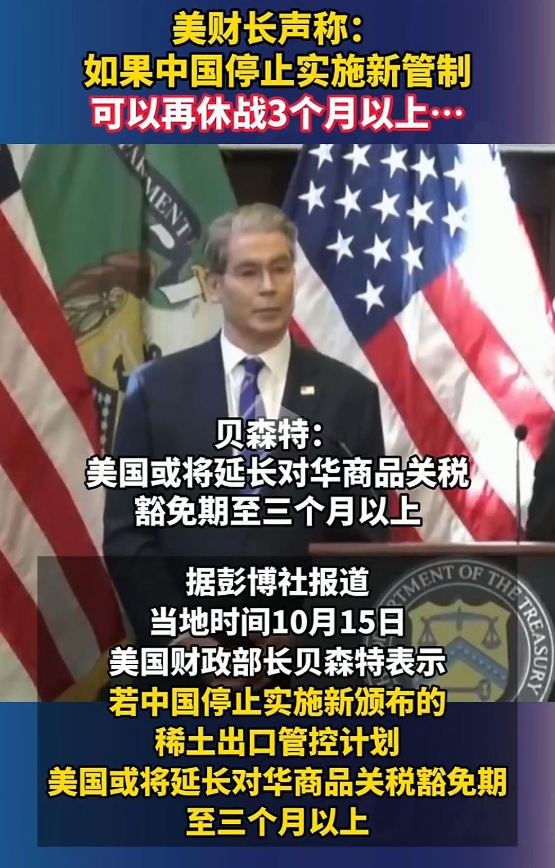 税宗,你不会真的现在才知道我们处于贸易战之中吧,那之前你整那么多花样出来是啥呢?是小孩子要糖吃的哭闹吗? 你看你的财政部长也挺搞笑的,喊话说,只要我们停止稀土管控,你们就将豁免中国关税3个月以上。 一看就是当年学习的时候不用心,以前你们美国对待我们中国有一个贸易歧视政策,叫贸易最惠国待遇,每年都要假装审批一下,说白了就是用这个来拿捏我们。 后来我们看这个也不是办法,就想一劳永逸地解决这个问题。于是就有了加入世贸组织的结果。 你们这是走回头路啊,而且把一年一批的贸易最惠国待遇改成3个月一批。 但是,中国还是30年前的中国吗? 你们都没有人想过这个问题? 还有这次中国主动出手,你们觉得就这样就能解决问题吗?幼稚! 慢慢等着吧。 点右上角关注我,我们一起去看这个魔幻的世界