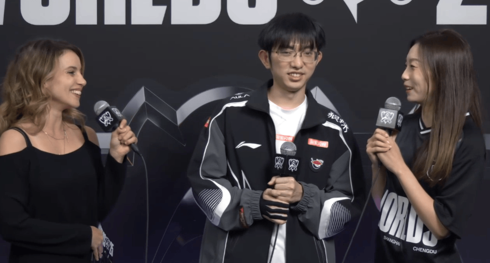 Q:恭喜你们赢下了比赛的胜利,当我们来到采访间的时候呢,主持人看到了你和对面的Ruler选手做了一个这样的动作,是有什么意味吗?