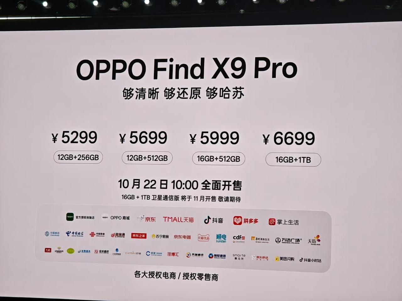 看完OPPO Find X9发布会才发现是我唐突了,标准版照着Pro做,这个价格对比来看挺香的!简单总结价格/配置 OPPO Find X9 12G+256GB —— 4399元 16G+256GB —— 4699元 12G+512GB —— 4999元 16G+512GB —— 5299元 16G+1TB —— 5799元 OPPO Find X9 Pro 12G+256GB —— 5299元 12G+512GB —— 5699元 16G+512GB —— 5999元 16G+1TB —— 6699元 16G+1TB 卫星通信版 :还没上市 共同配置: ◇天玑9500 处理器丨LPDDR5X |UFS 4.1 闪存 ◇潮汐引擎 性能平台丨LUMO 凝光影像系统:首发超像素引擎 ◇4K超清实况照片,全焦段8K超清照片 ◇ 冰川电池:80W有线充电|50W无线充电 ◇ 首发 OPPO 芯链丨山海通信增强芯片丨自研 P3 显示芯片 ◇3D 超声波指纹解锁丨IP66&68&69防尘防水 ◇ 红外遥控|NFC|双扬声器 ◇ ColorOS 16(Android 16)全新体验 ◇ 全天候全屏AOD ◇ 44W UFCS融合快充|55W PPS ◇ 支持哈苏专业磁吸闪补光环灯 区别: OPPO Find X9 ◇6.59英寸AMOLED 居中单孔直屏丨分辨率2760*1256|120Hz无自适应丨低亮度(<70nits)3840Hz 高频PWM调光丨丨460ppi丨240Hz采样率 ◇ 7025mAh单芯电池丨USB 2.0 ◇影像📷 50MP LYT-808 主摄 OIS 50MP LYT-600 潜望长焦 3X OIS 50MP JN5 超广角 2MP 丹霞原彩 32MP IMX615 前置 OPPO Find X9 Pro ◇ 8.25mm,重224克 ◇ 6.78英寸 OLED 居中单孔直屏丨分辨率2772*1272丨120Hz LTPO自适应刷新率丨低亮度(<70nits)2160Hz 高频PWM调光丨天马屏丨450ppi丨240Hz采样率 ◇ 7500mAh单芯电池丨USB 3.2 Gen1丨0816 增强版X轴线性马达 ◇ 影像 50MP LYT-828 主摄 OIS 200MP HP5 潜望长焦 3X OIS 长焦微距 50MP JN5 超广角 2MP 丹霞原彩 50MP 前置 说实话,今年厂商的策略都是这价,这么一对比OPPO Find X9系好像还真挺香的,优势就是全焦段影像。如果后续性能测试也很能打,那么OPPO Find X9系不愁卖,毕竟四千多的直屏均衡影像旗舰会很抢手。 另外OPPO Find X9标准版跟Pro版差别真的太小了,屏幕标准版没有自适应刷新率,电池比Pro小500mAh,然后马达差异和影像差异,其他都是一样的。 怎么说呢,OPPO Find X9 Pro也挺有竞争力的,8K超清照片,2亿哈苏长焦[捂脸],并且还有长焦微距。本来OPPO的哈苏影像就是公认的强,这下好了,跟华为一样,搞了个丹霞原彩,色彩还原应该不错。 后续真机如何,兄弟们等我上手,完了给购买建议,以及怎么买更便宜。反正货比三家不吃亏,大家说呢?