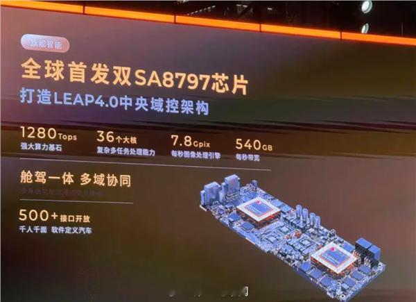 智能配置:搭载双高通骁龙8797芯片,算力达1280TOPS,支持VLA世界模型辅助驾驶系统与端侧大模型座舱