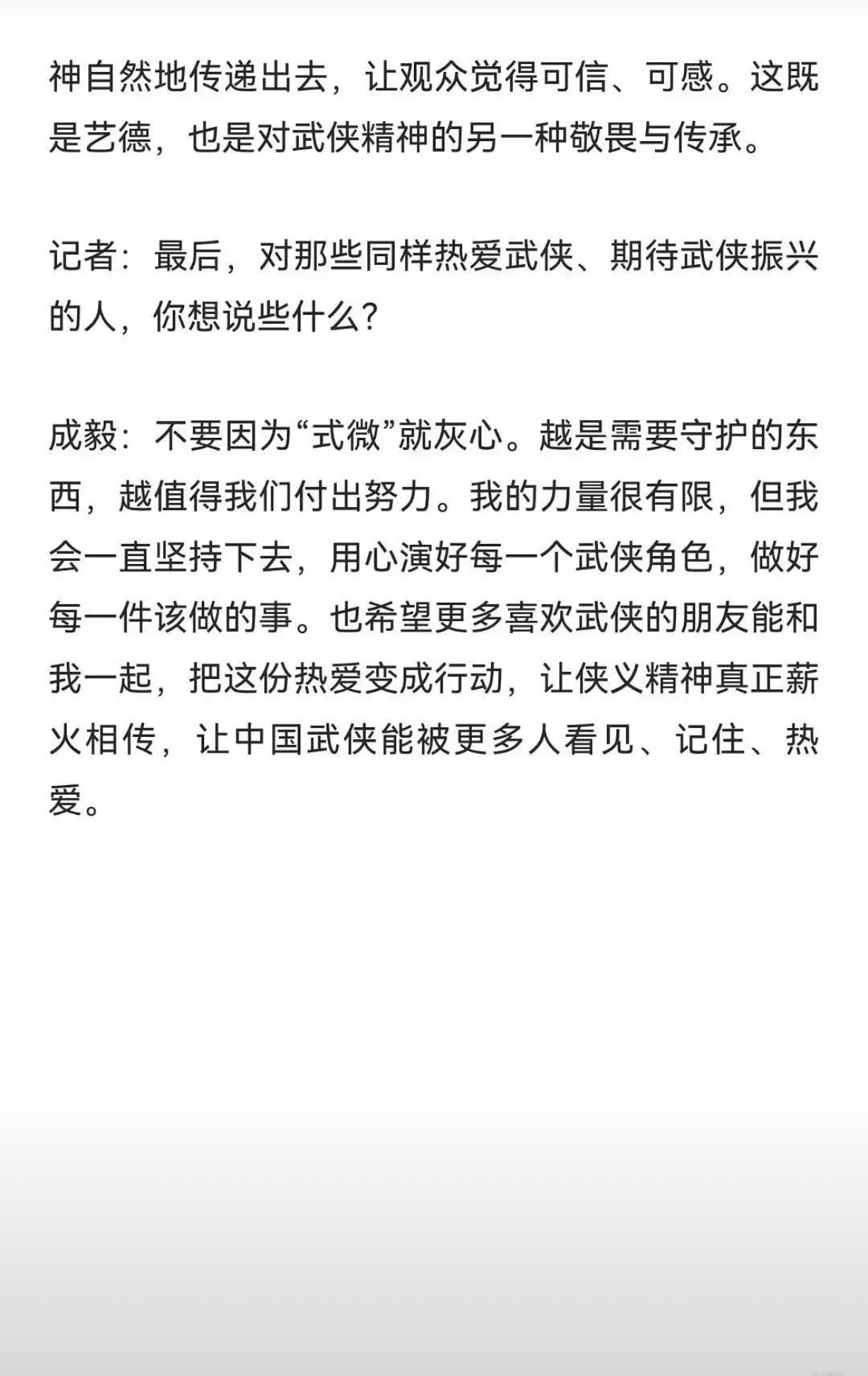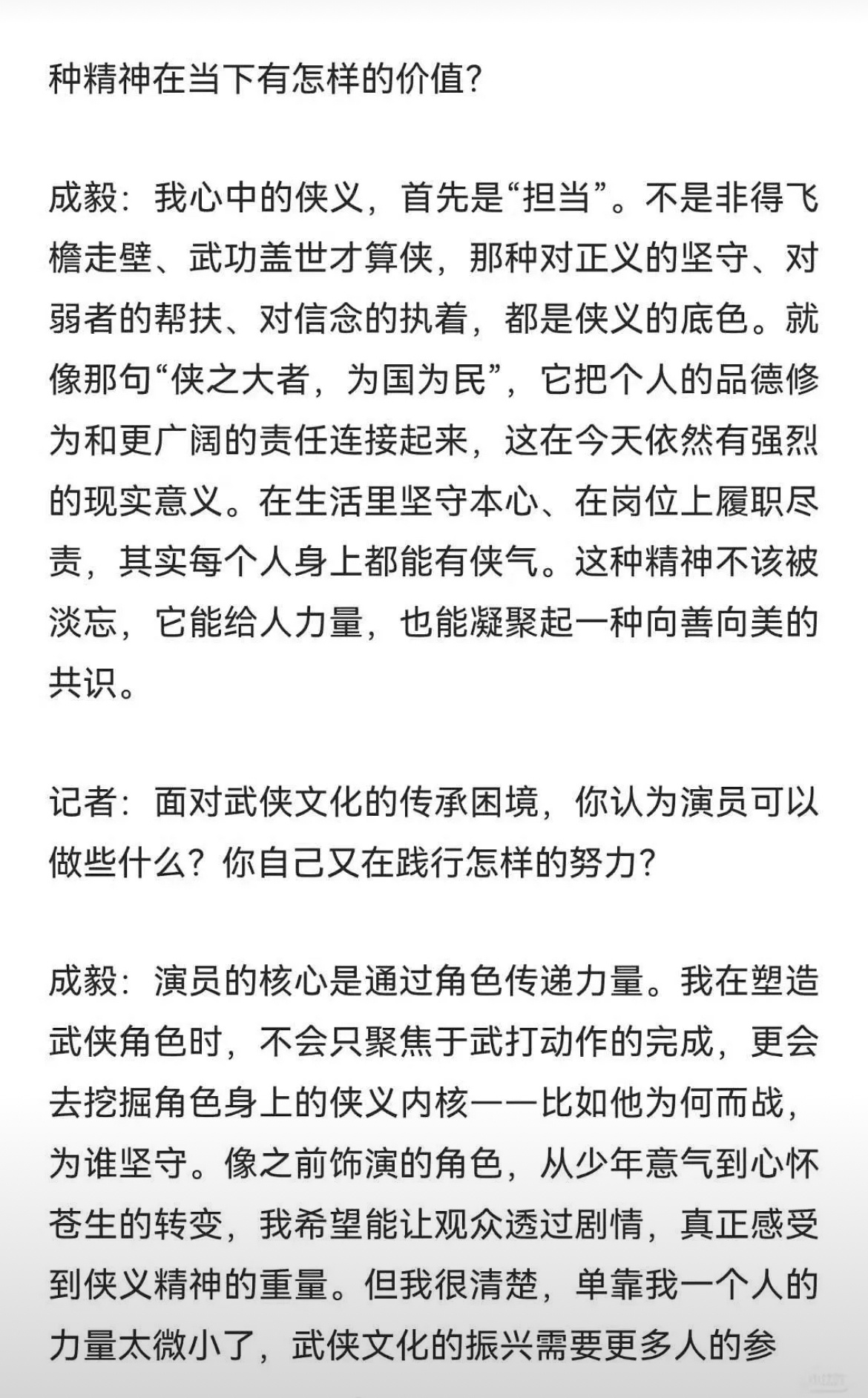 人民日报专访成毅:以微力聚星火,让侠义精神薪火相传。这样的好演员不该被黑。