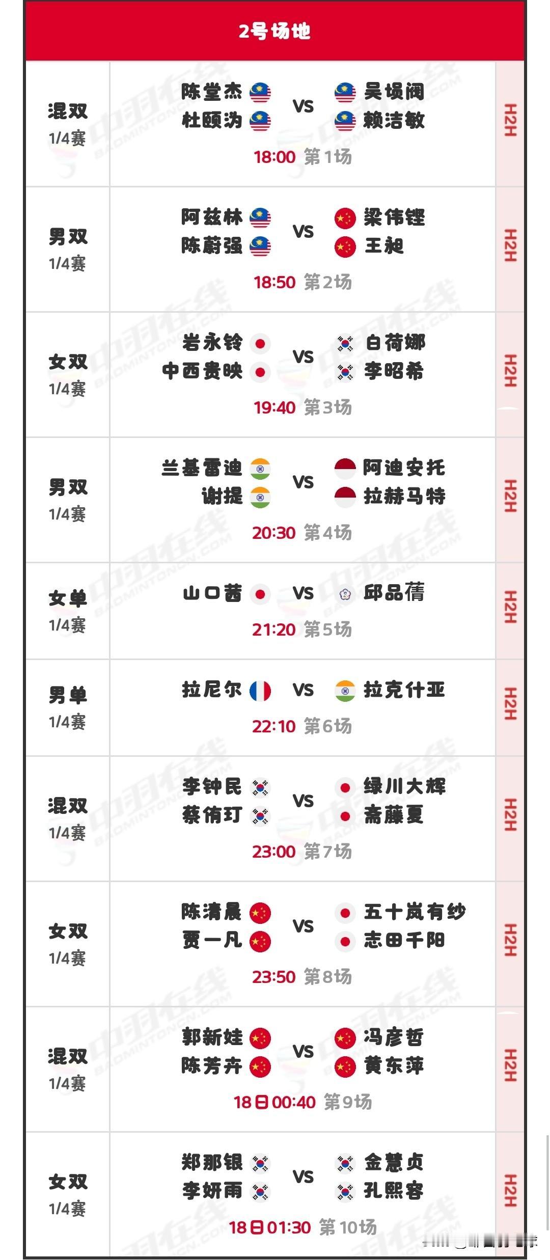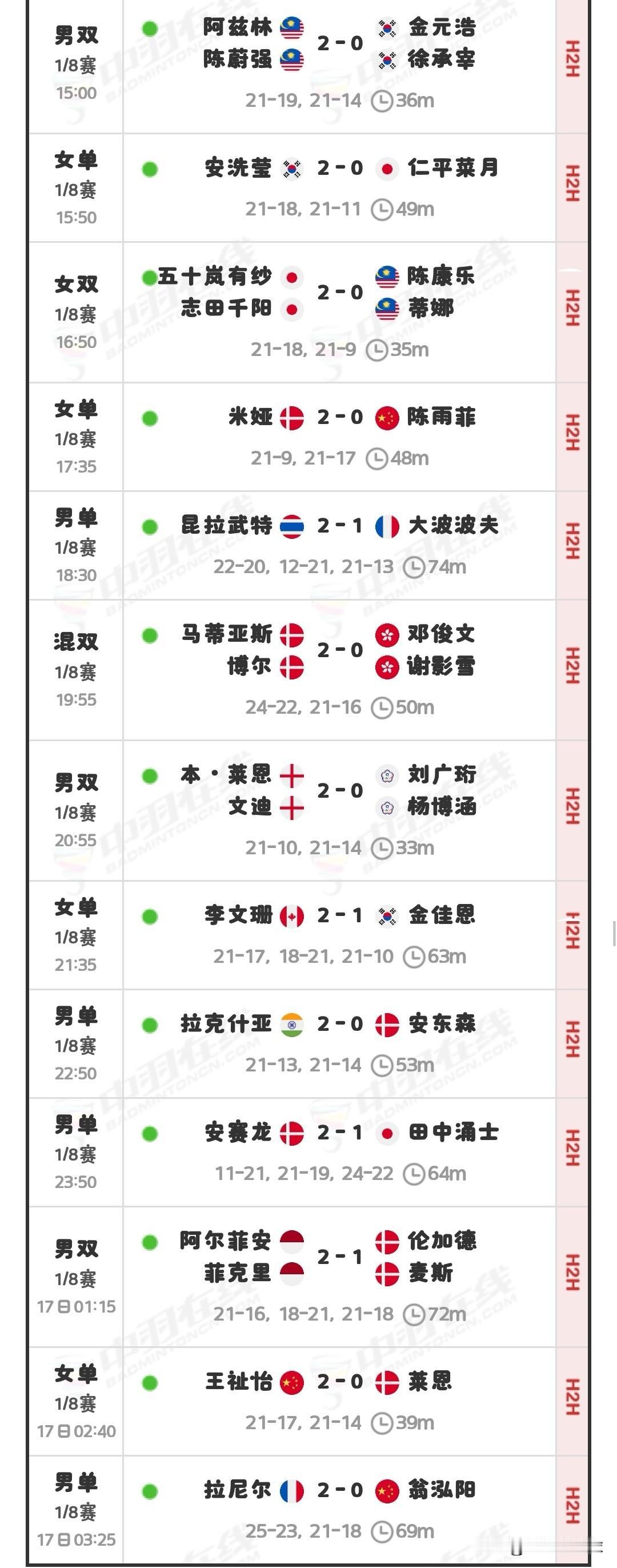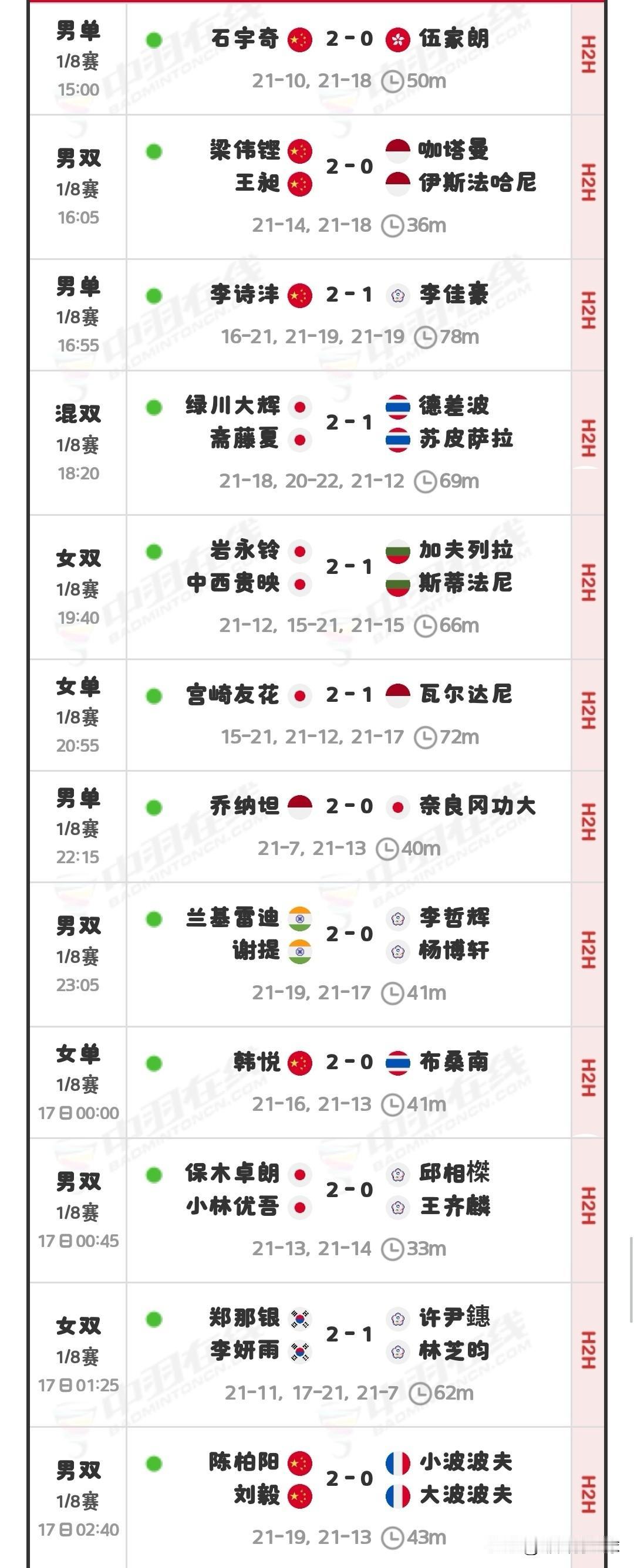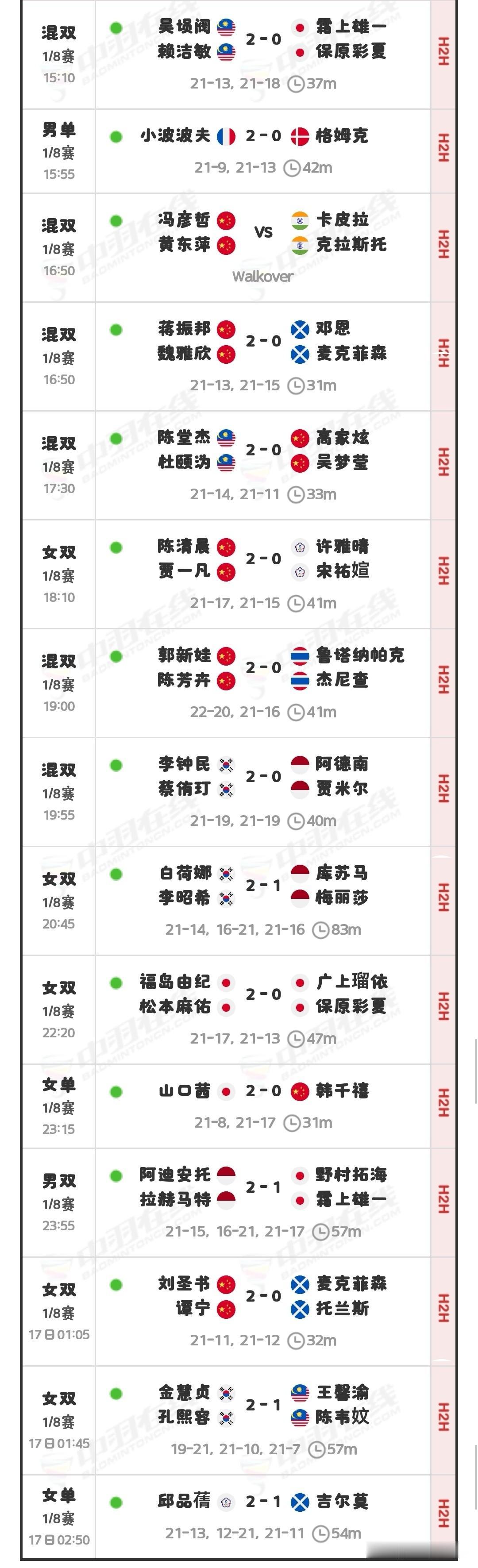 10月17日丹麦羽毛球公开赛1/4决赛安排 昨日,国羽在比赛中取得11胜4负的