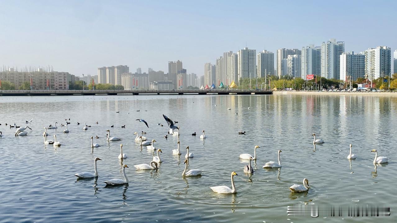 美丽的梨城库尔勒一日游,没想到能在人烟稠密、车流不息的闹市中心,偶遇拖家带口、成群结队的近百只美丽而优雅的小天使——白天鹅! 得益于天山山脉向塔克拉玛干沙漠过渡的特殊地理位置,以及源出于博斯腾湖的孔雀河冲积扇平原绿洲的优越地形地貌,梨城库尔勒并不如其他南疆城市那般水源匮乏,市区内就有孔雀河、杜鹃河、白鹭河、鸿雁河等河流穿城而过,沿岸林木茂密、生态优美、风景宜人,更是吸引了各类珍稀鸟禽在此栖息繁衍。 库尔勒市区一日游,就在杜鹃河畔的“沙漠之魂”彭加木雕塑前,有幸看到了刚刚自西伯利亚和巴音布鲁克天鹅湖迁徙而来的美丽而优雅的天使——白天鹅。 据正在河畔执勤的园林绿化中心工作人员介绍,杜鹃河已经连续20年迎来了白天鹅越冬栖息,而且数量越来越多,去年的冬天已经达到了600余只。它们每年10月中旬左右迁徙到来,直至来年3月春暖之际才会北迁。期间,为保障天鹅安全越冬,在冰封河流的严冬之时,库尔勒市政府会采取砸冰破河等措施来确保天鹅有足够的游弋空间和适合它们过冬的舒适环境,也因此吸引了更多的天鹅来此越冬栖息。 杜鹃河畔,高楼林立、车水马龙,杜鹃河里,鸥鸟低翔、天鹅游弋,蓝天之上,行行飞鸟,优雅翱翔……耳畔,有天使们“咯哩咯哩”此起彼伏的清脆鸣叫,那声音,如同天籁——好一首人与动物、自然和谐相处的动人音符! 库尔勒 来库尔勒旅游 库尔勒旅行攻略 梦中的库尔勒 库尔勒公园