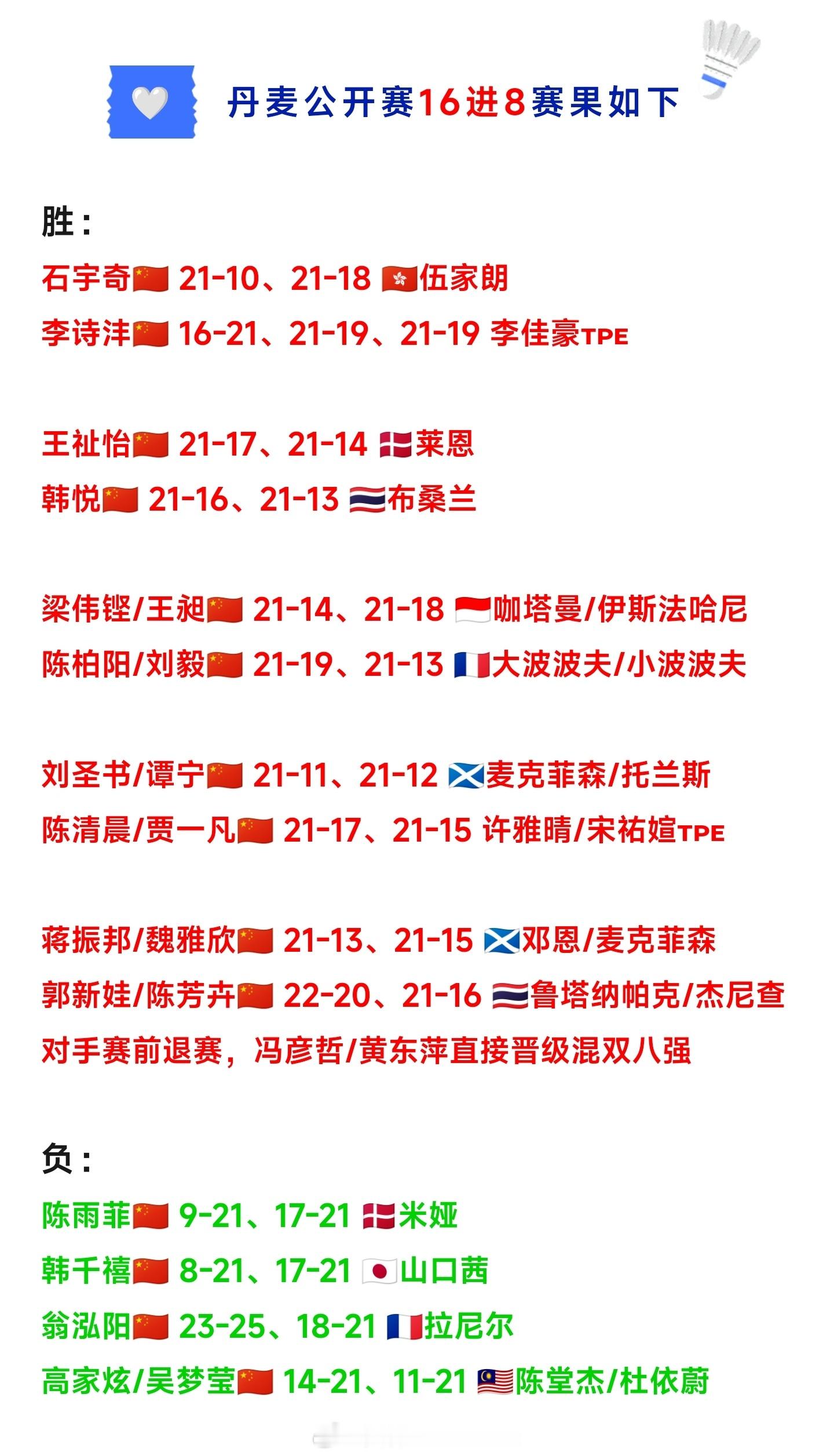 国羽🇨🇳16进8赛果(图2:11胜4负)