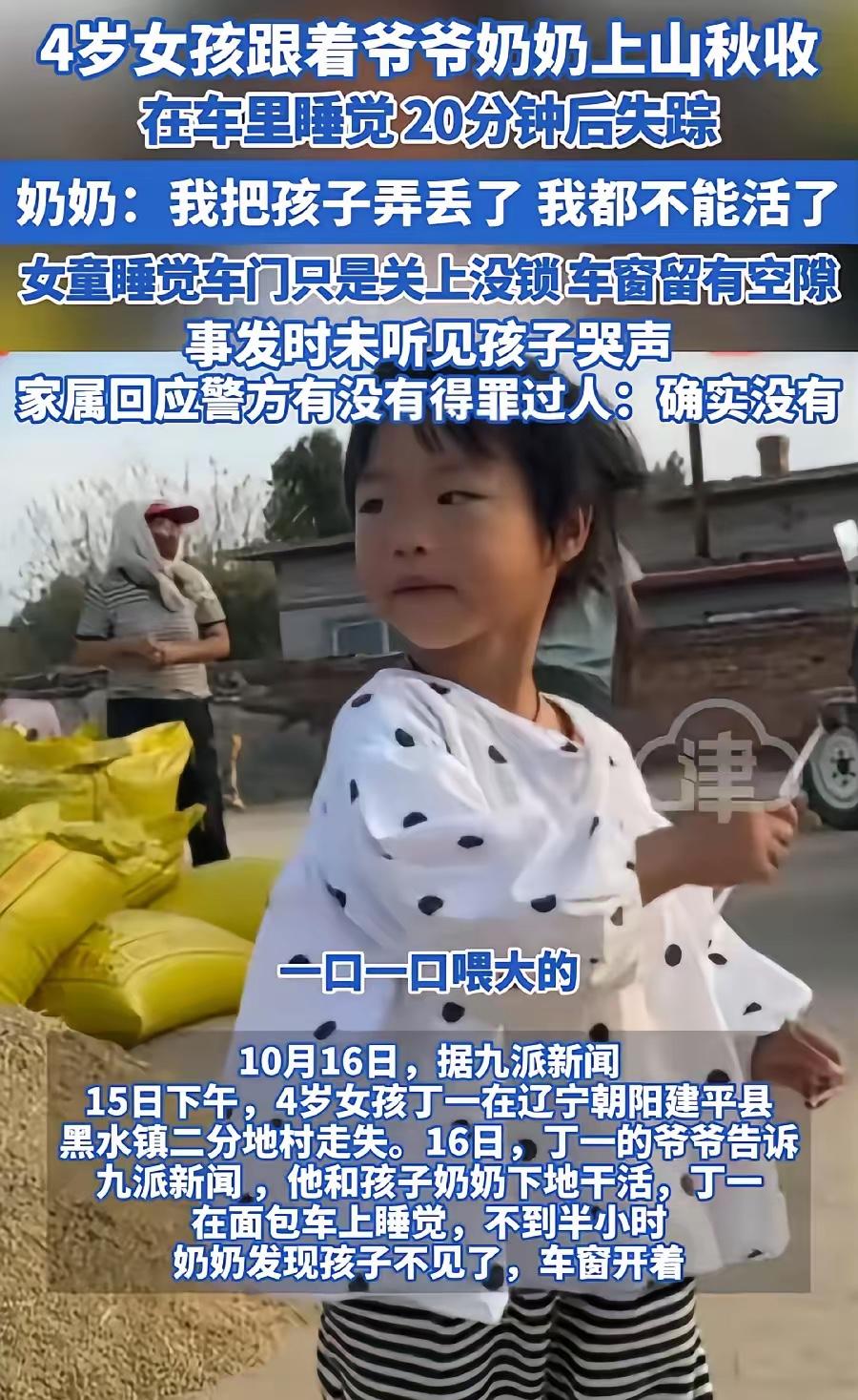 这孩子现在到底在哪。 辽宁一个四岁女孩在地头面包车里睡觉时不见了。爷爷奶奶在附