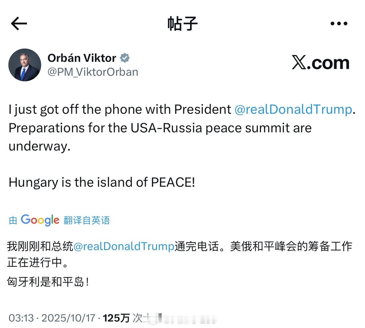 特朗普宣布和普京会面后,维克托非常兴奋,表示匈牙利已经做好准备!俄美总统通话细