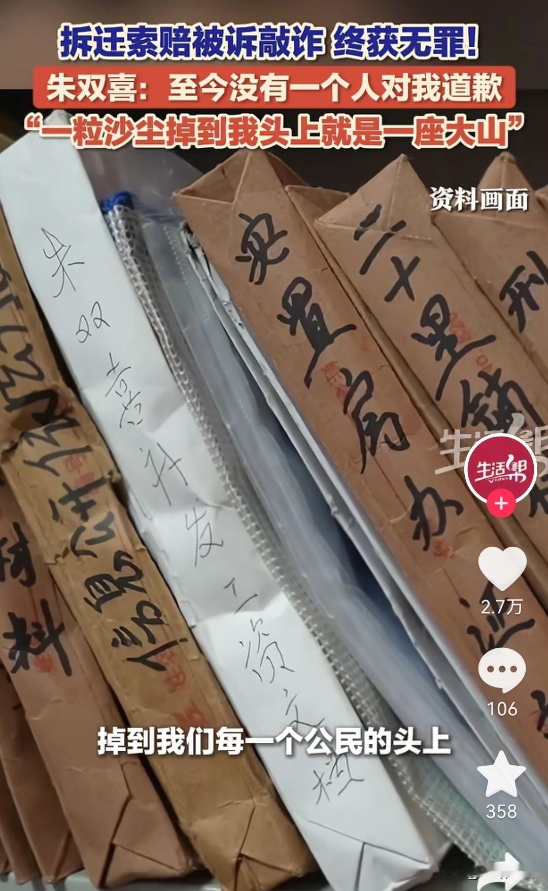 男子拆迁索赔被诉敲诈,羁押500多天终获无罪释放! 其实普通人生活上生意上,都有一把大型的枷锁,只是先后顺序而已,这大哥经历就是最好的证明。 很同情你 ,也很愤怒,他们不是不道歉,而是不能承认错误,不然就得有人负责后果,人性 趋利避害,没办法!