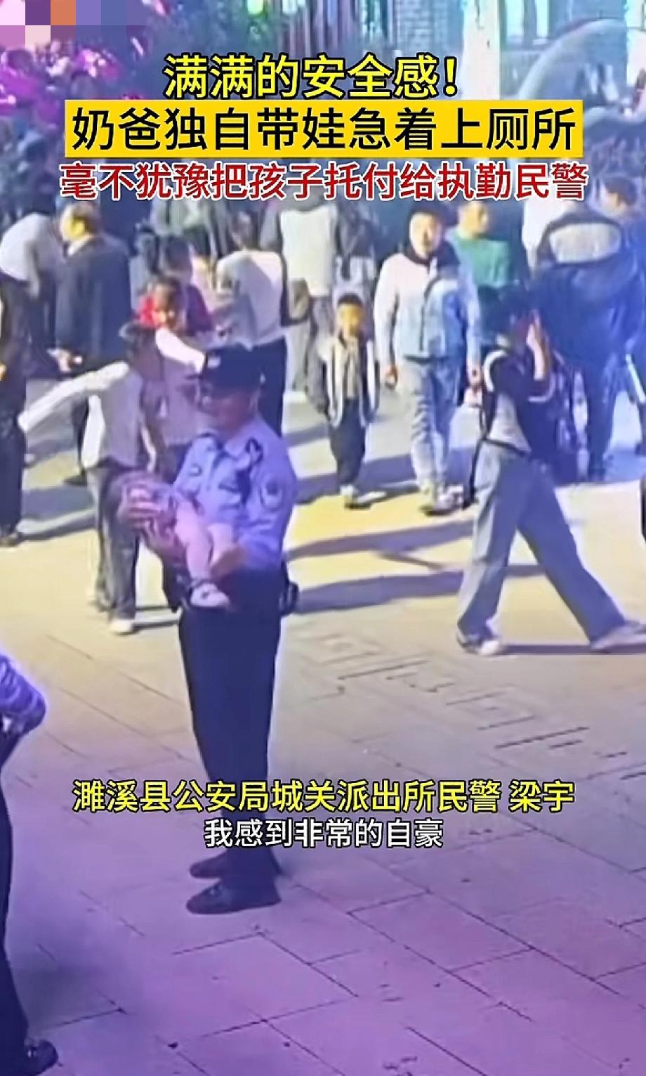 “你最信任的人是谁?”安徽濉溪,一名宝爸带着一周岁的孩子,由于着急上厕所,怀里的
