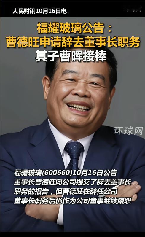玻璃大王曹德旺交棒!长子曹晖接任,民企传承时代开启 曹德旺的退休不仅是一位企业家