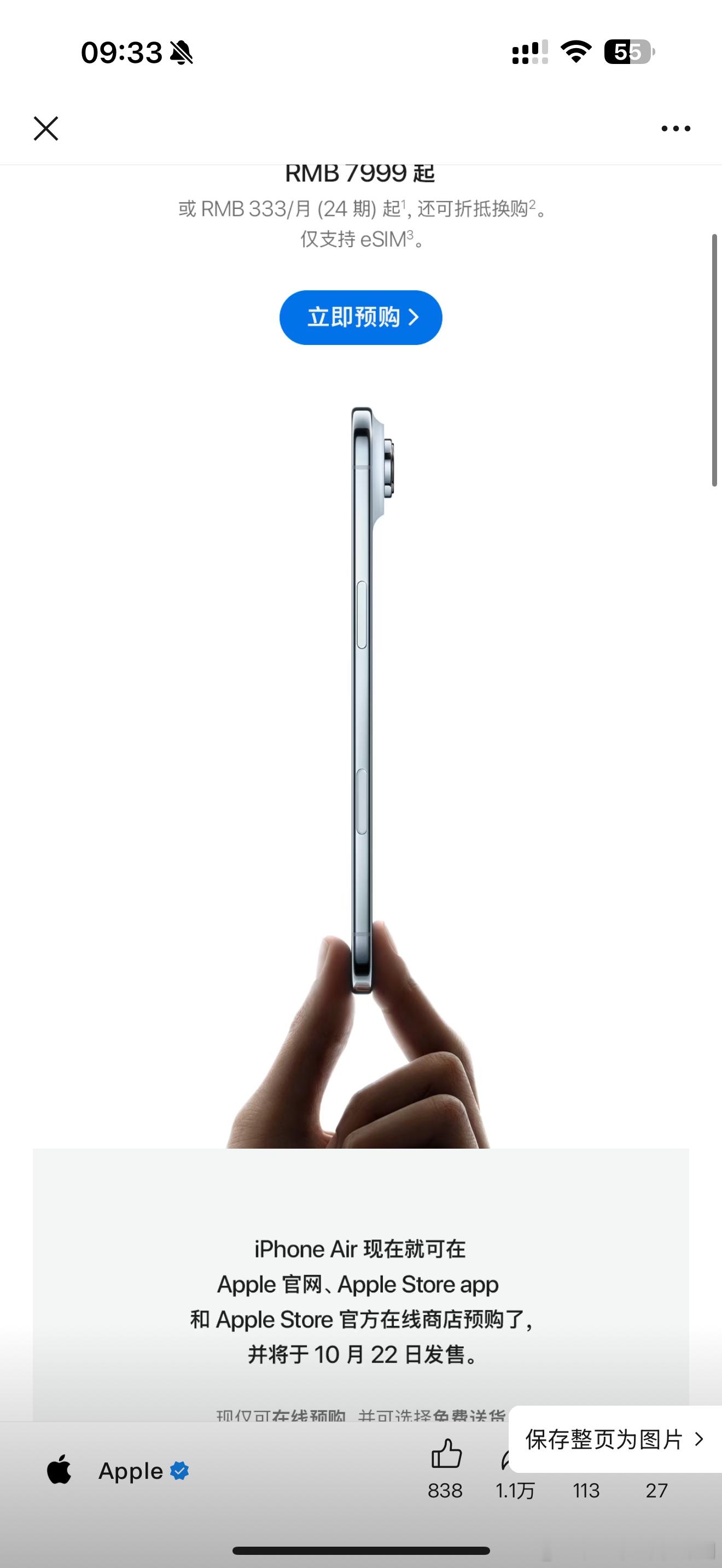 说实话用惯了厚重手机,回归轻薄,Air 这手感是真的好,现在就看 esim 的发展了,这两天带着手机去线下开卡体验一下,上周打电话问运营商,还不能开[吃瓜]