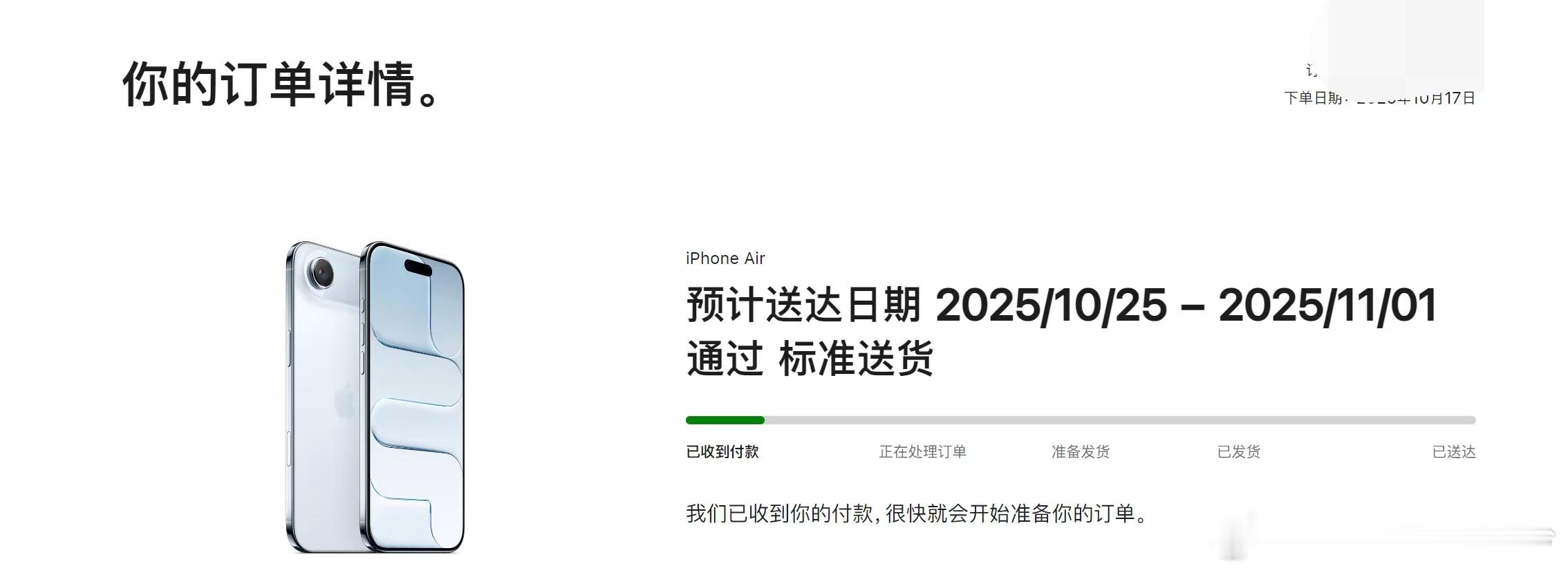 iPhoneAir正式开售 官网9点准时下了一台,排到了25号[摊手][摊手]