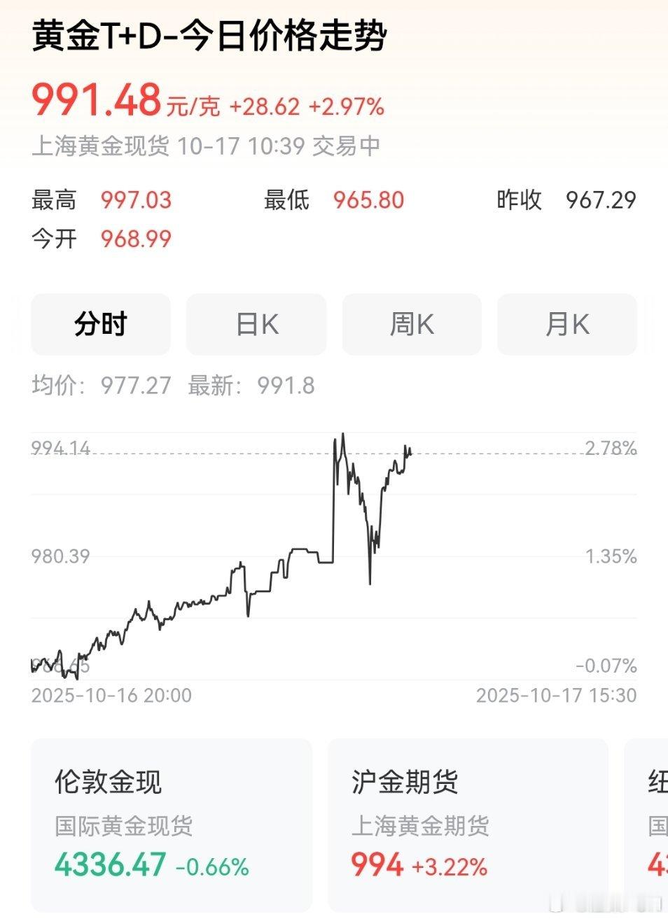 一早起来,黄金的涨势吓我一跳!最高到了997元,就差一步到1000元了!不过,现在伦敦金在回调,破千可能还要等两天?