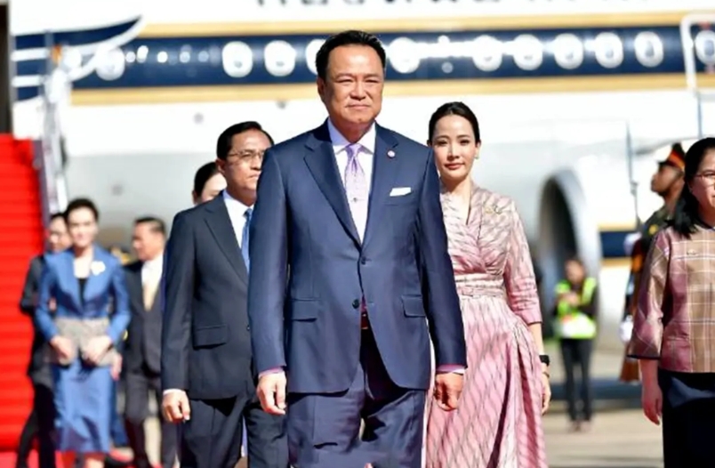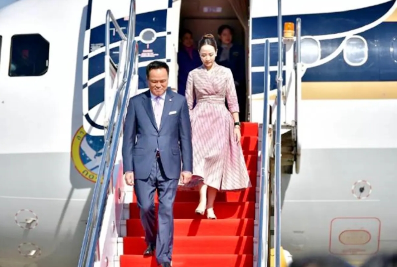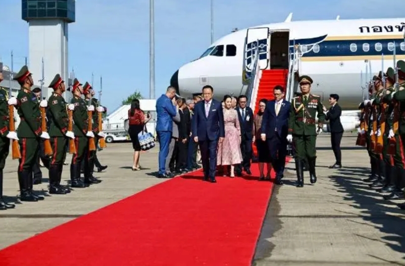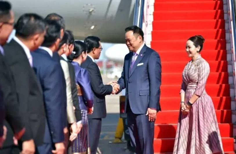 10月16日,泰国新总理携夫人抵达老挝,开始他当总理以来首次国外访问。 画面中,泰国新总理阿努廷还是很有气场的,不输泰国前总理佩通坦,值得一提的是,这次泰国新总理还携带漂亮的夫人过来,当天泰国新总理阿努廷夫人造型非常时尚,一件粉色的连衣裙,还佩戴一款手表,发型也盘了起来,整体造型非常利索干脆,走在迎接红毯上就像一位超模一样。很多网友也感觉她比老公还要有气场,比之前泰国前总理佩通坦要有气质。 据悉泰国新总理这次来老挝,还是老挝总理邀请过去的。首次出访的泰国新总理也受到老挝的热情接待,现场红毯铺地,还要送花小姐姐,该有的礼节几乎都安排上了。