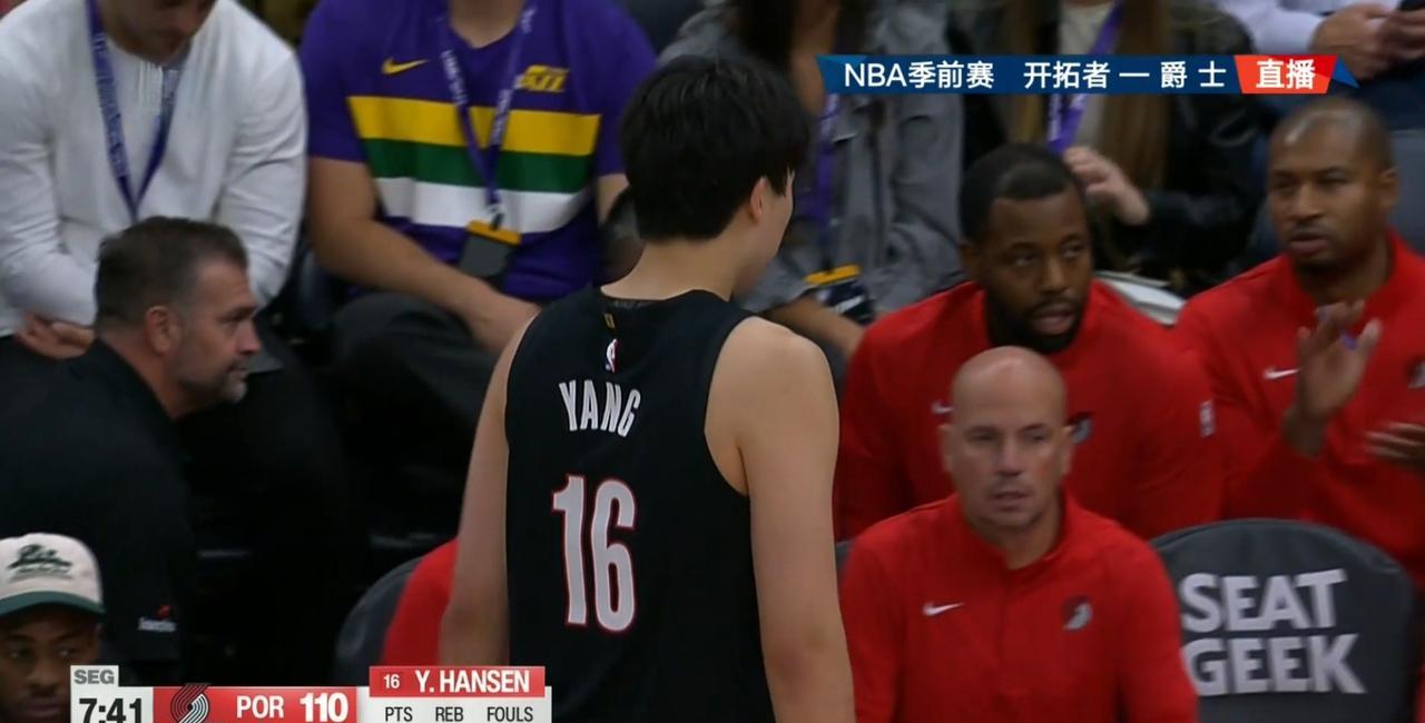 开拓者小将杨瀚森真是太委屈了!在今天开拓者客场挑战爵士的季前赛中,当时比赛进行到