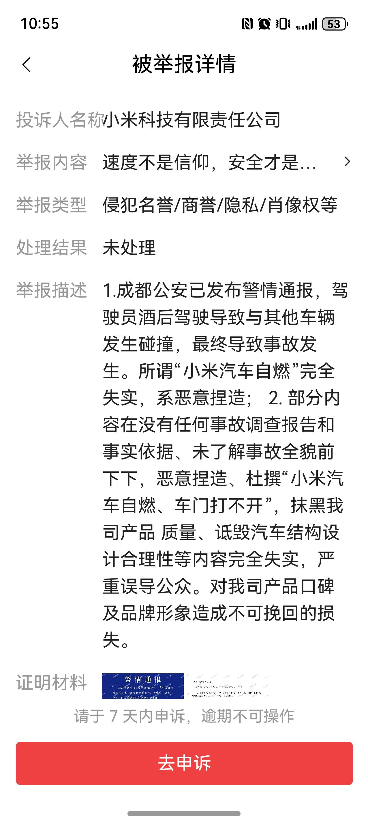图是新华社发的,文字说的是安全是汽车最高的要求,这也要被投诉删帖,小米的法务真的比天还大吗?