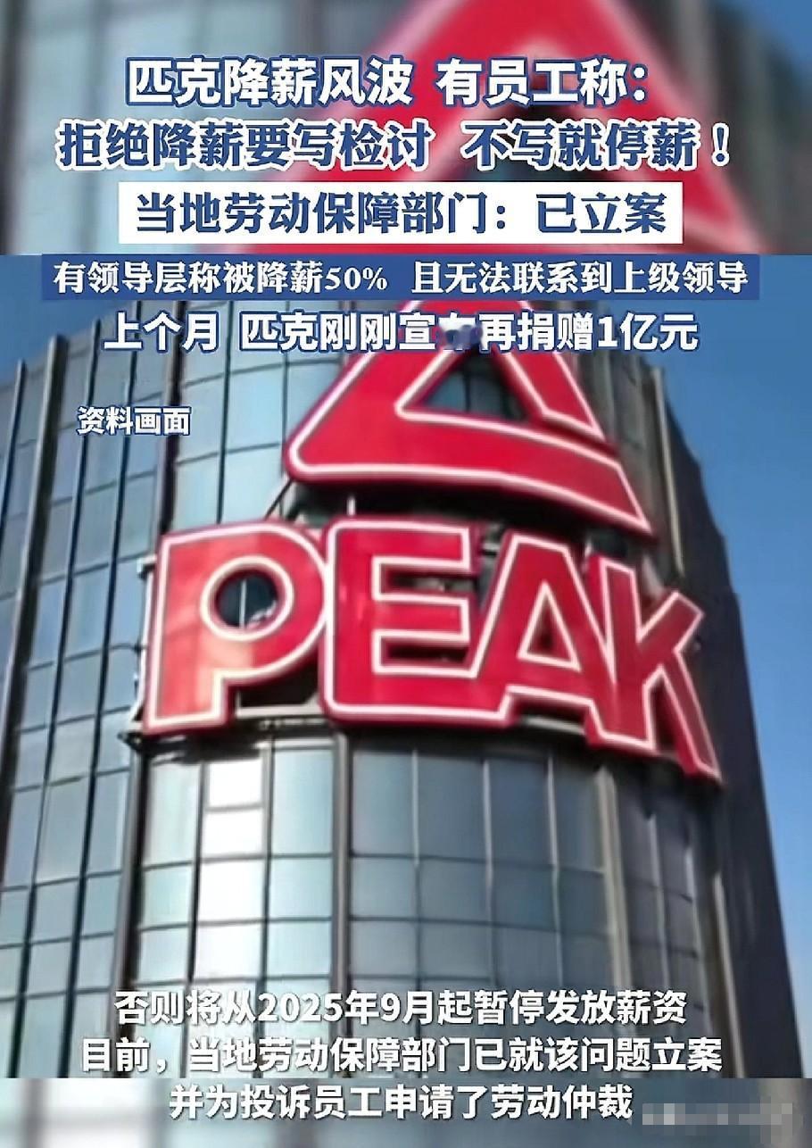把泉州的脸都丢了,给员工降薪50%却背后捐款一个亿,匹克员工反应:拒绝降薪就写检讨,拒绝检讨就停薪。这离了大谱,员工做错了什么要写检讨。 匹克从9月开始搞“阶梯式降薪”,工资高的降30%,直营店员工直接腰斩50%,这也就罢了,关键是操作手法可是真不地道。 发工资前4天口头通知,连张纸片子都没给,等钱扣完了,才慢悠悠发个通告说“全体员工理解支持”。 更魔幻的是,有员工不肯认这哑巴亏,公司竟要求,他们写检讨,不写就停薪,好家伙,这年头,打工还得学会写悔过书? 说实在话,见过不少企业喊“共渡难关”,可匹克一边对员工挥砍刀,一边扭头给泉州慈善总会捐1个亿,这也太魔幻了。 许景南老板举着捐款牌的照片,还在官媒上挂着,咱不是说捐款不对,可这头让员工勒紧裤腰带,那头撒钱换名声,这对吗? 再说说这“检讨书”的套路,劳动法白纸黑字写着,调薪得协商一致,匹克倒好,直接搬出“反思说明”的土政策。 泉州人社局都表态了:写检讨是企业内部行为,但以此克扣工资违法。 (每天更新,点进主页我们一起看世界!喜欢文章的可以帮忙点个关注点个赞~) 可匹克愣是装聋作哑,连维权的员工,找劳动监察都被告知“得排45天队”,许老板这是吃准了,打工人工耗不起。 对此大家怎么看?