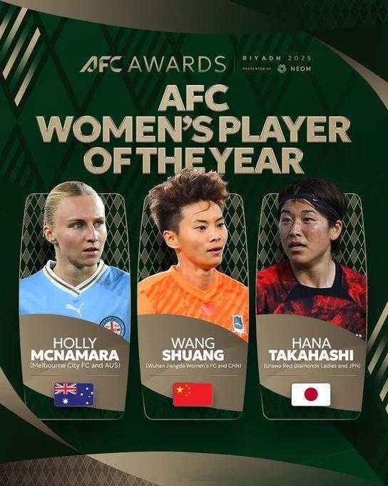 王霜无缘亚足联最佳2025年亚足联年度颁奖典礼在沙特利雅得举行,日本球员高桥花当