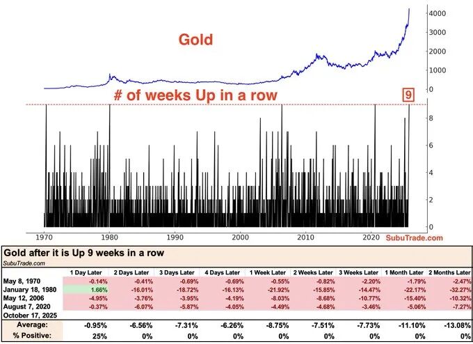 从周线级别来看,金价本周已极有希望实现连续第九周上涨。回顾历史,至少自1970年代以来,黄金价格还从未实现过连续10周上涨,下周金价无疑有望尝试是否能捅破这层“窗户纸”。
