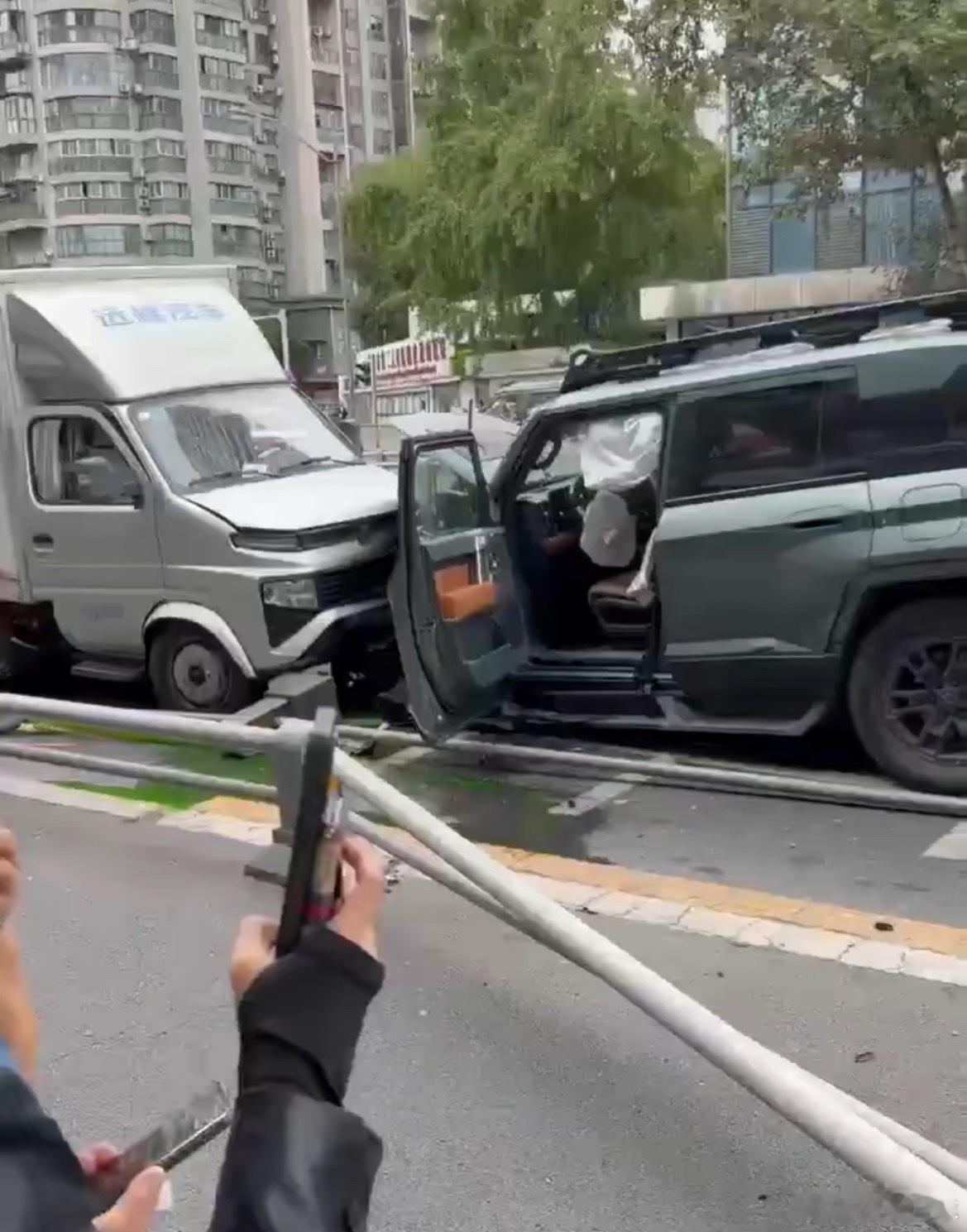 据路人说,肇事司机没事,是一名女司机。
